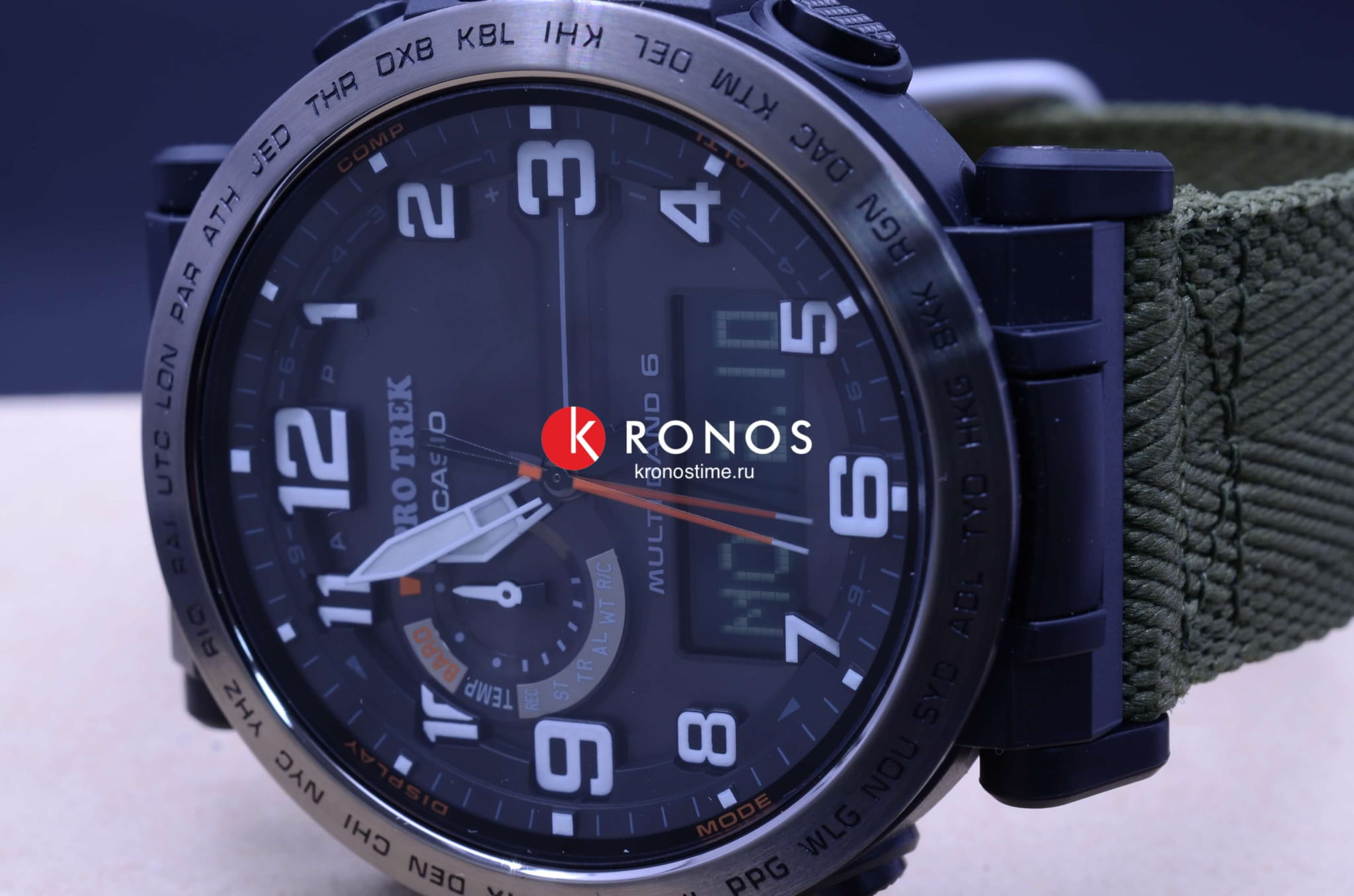 , секундомер, хронографХронографФункция позволяет измерять отрезки времени с особой точностью: часы, минуты, секунды. Верным признаком хронографа является наличие на циферблате 3 дополнительных окошек-счётчиков., календарь, мировое времяМировое время Полезное часовое усложнение, отображающее время в основных городах и известных областях по всему миру, оно связано с часовыми поясами, удобно для путешественников и бизнесменов. – 29 часовых поясов. Это часы на солнечной батарее , функция сохранения энергии позволяет модели работать без подзарядки на протяжении 25 месяцев. Текстильный ремешок цвета хаки. Ударопрочный корпусУдаропрочный корпусМеханизм заключён в корпус, выполненный из современных материалов, устойчивых к ударам, механическим повреждениям и падению с высоты: инновационный пластик, карбон, нержавеющая сталь, титан. из пластика и стали 316L с IP-покрытиемIP-покрытиеМетод ионного напыления. Демонстрирует повышенную устойчивость к истиранию, окислению и химическим веществам. Под воздействием высокого давления и температуры около 1500°C молекулы металла надёжно соединяются с частицами корпуса часов.. Минеральное стекло. Устойчивость к температурам ниже -10°C. Двойная светодиодная подсветкаСветодиодная подсветкаСветодиодная или LED-подсветка обеспечивает появление яркого холодного свечения за счёт LED-элементов - маленьких лампочек. Они потребляют минимальное количество энергии, чаще всего можно встретить 1 светодиод, в нижней части циферблата.. Класс водостойкости WR 100. Габариты: 51,6 x 51,5 x 13,4 мм.