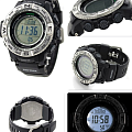 Часы, созданные для любителей активного отдыха. Питание от солнечной энергии Tough Solar - солнечные батарейки большой мощности, индикатор заряда батареи. Функция автоматического сохранения энергии. Модуль часов рассчитан на работу при низких температурах до -10°С/14°F. Прием радиосигнала (Европа, США, Япония, Китай). Технология Triple Sensor позволяет точно и легко определять сторону света, температуру и атмосферное давление. Термометр от -10° до +60°С с точностью 0,1°C. Барометр - измерение атмосферного давления от 260 до 1100 гПа (от 195 до 825 мм рт. ст.). Встроенный цифровой компас. Диапазон измерения от 0° до 359° с точностью 1°. Высотомер - встроенный датчик барометрического давления. Данные о восходе/закате солнца. После введения географического местоположения, на экране будет отображаться восход и закат солнца для любой установленной даты. Секундомер с точностью показаний 1/100с Сплит-хронограф. Таймер обратного отсчета от 1мин до 1ч. Функция перемещения стрелок. Функция отключения/включения звука. Будильник (5 установок). Минеральное стекло устойчиво к появлению царапин. Водонепроницаемость (10 Бар).
