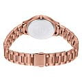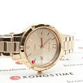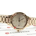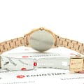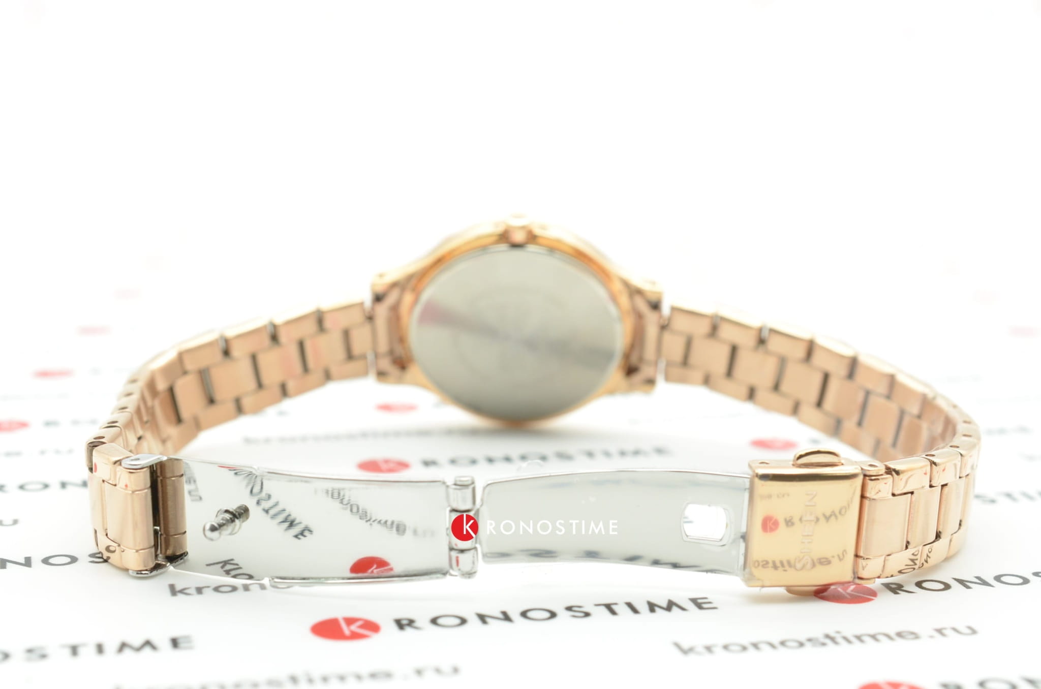 Традиционный круглый циферблат отличается лаконичным исполнением, на светлом фоне ярко выделяются золотистые часовые метки, стрелки и арабские цифры. Оттенок роскоши придают кристаллы Swarovski, их сияние создаёт праздничное настроение. Кварцевый механизм японского производства с высокой точностью хода. Износоустойчивое IP-покрытиеIP-покрытиеМетод ионного напыления. Демонстрирует повышенную устойчивость к истиранию, окислению и химическим веществам. Под воздействием высокого давления и температуры около 1500°C молекулы металла надёжно соединяются с частицами корпуса часов. золотисто-розового цвета. Тонкий браслет из нержавеющей стали 316L. Водостойкость при давлении 5 бар. Индикация числа. Габариты: 30 x 36,7 x 5,8 мм.