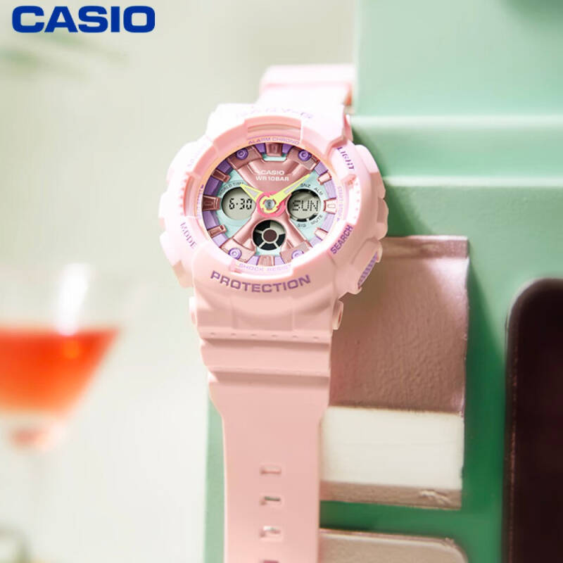 Японские женские часы с функцией мирового времениМировое время Полезное часовое усложнение, отображающее время в основных городах и известных областях по всему миру, оно связано с часовыми поясами, удобно для путешественников и бизнесменов. Casio Baby-G BA-130PM-4A, из коллекции Baby-G. Функции: автоматическая светодиодная подсветка, ударопрочный корпусУдаропрочный корпусМеханизм заключён в корпус, выполненный из современных материалов, устойчивых к ударам, механическим повреждениям и падению с высоты: инновационный пластик, карбон, нержавеющая сталь, титан., секундомерСекундомерСекундоме́р — прибор, способный измерять интервалы времени с точностью до долей секунды., таймерТаймерОтсчитывает секунды в обратном направлении в заданном интервале времени., 5 будильниковБудильникБуди́льник — часы, в заданный момент времени подающие звуковой, световой и/или в редких случаях другой сигнал., подсветка NeobriteПодсветка NeobriteИспользование светонакопительных составов на основе сульфида цинка или алюмината стронция, яркий свет можно наблюдать на протяжении 6-10 часов после «зарядки» часов около источника света., автоматический календарь, ежечасный сигнал, 12/24 - часовое отображение времени, вкл/выкл звука кнопок. Минеральное стекло, корпус из полимерного пластика, ремешок из полимерного материала, стандартная застежка, водонепроницаемость (10 бар). Габариты (Ш x В x Г) 46,3 х 43,4 х 15,8. Вес 45 г.