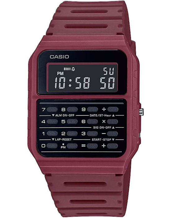 Аксессуар серии Vintage предстаёт в оригинальным формате, олдскульный внешний вид оценят любители ретро-облика вещей. Наручные часы яркого оттенка оснащены 8-разрядным калькулятором для совершения различных математических операций. Есть базовые усложнения, помогающие в решении повседневных задач: хронографХронографФункция позволяет измерять отрезки времени с особой точностью: часы, минуты, секунды. Верным признаком хронографа является наличие на циферблате 3 дополнительных окошек-счётчиков., будильник, секундомер, отображение мирового времениМировое время Полезное часовое усложнение, отображающее время в основных городах и известных областях по всему миру, оно связано с часовыми поясами, удобно для путешественников и бизнесменов. , вечный календарьВечный календарьКлассическое часовое усложнение, представляющее собой календарь, рассчитанный на несколько лет вперёд (стандартно – до 2099 года). Определяет текущую дату, день недели, месяц. до 2099 года. Часы Vintage Mannish Color сделаны из полимерного материала, устойчивого к повреждениям. В основе работы – японский кварцевый механизм, получающий энергию от элемента питания. 1 батарейка рассчитана на 5 лет службы. Циферблат дополнен прочным акриловым стеклом. Габариты: 43,2 x 34,4 x 8,2 мм.