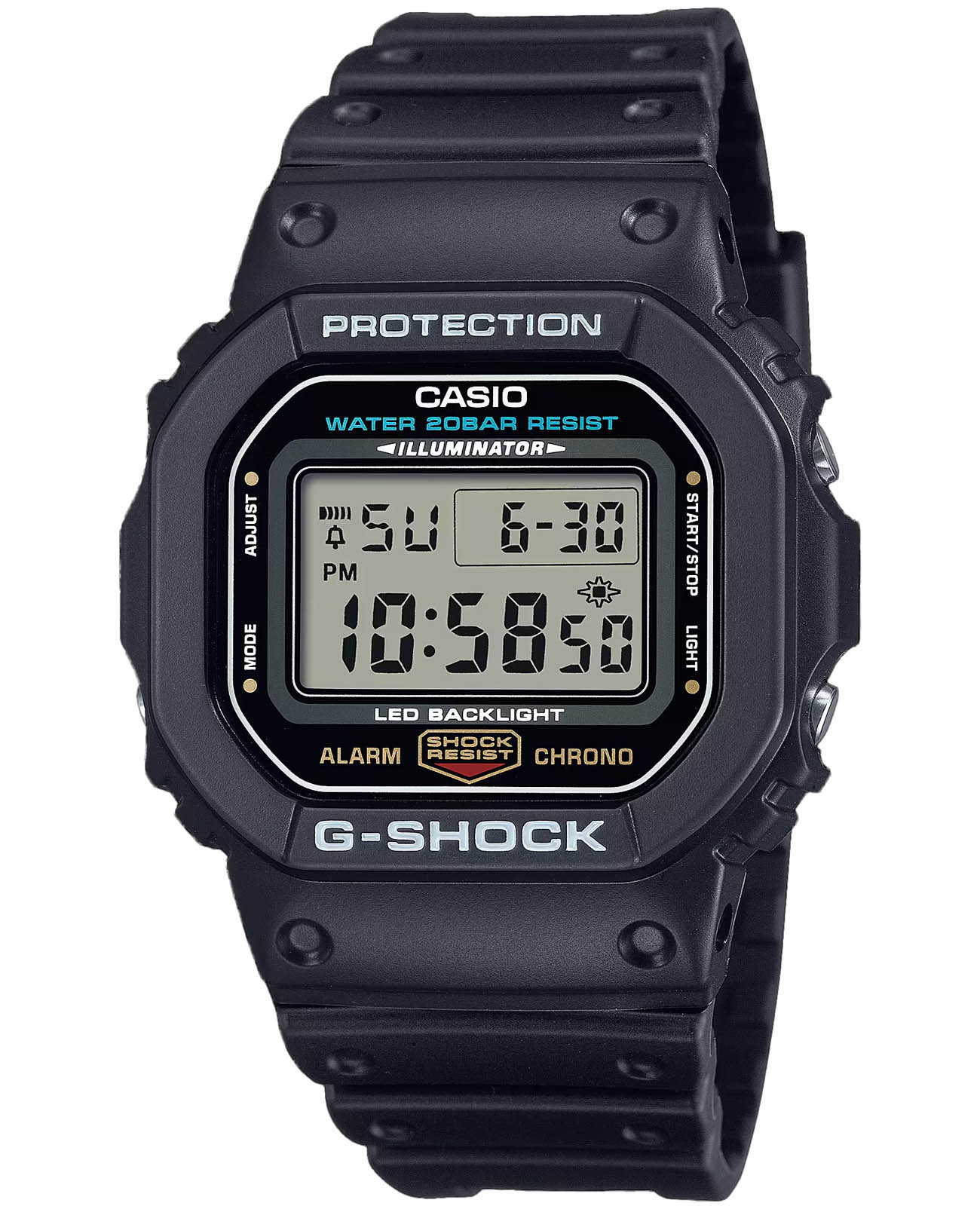 Японские мужские часы-хронографХронографФункция позволяет измерять отрезки времени с особой точностью: часы, минуты, секунды. Верным признаком хронографа является наличие на циферблате 3 дополнительных окошек-счётчиков. Casio G-Shock DW-5600UE-1DR (DW-5600UE-1). Силуэт данного корпуса давно стал классикой и является одним из самых узнаваемых в мире наручных часов. Прекрасный аксессуар на каждый день, который дополнит любой из ваших образов. Корпус изготовлен из полимерного материала. Минеральное стеклоМинеральное стеклоМинеральное стекло представляет собой искусственно выращенный минерал кварца. Такое стекло отличается особой устойчивостью к повреждениям и царапинам. Уступает по некоторым качествам сапфировому стеклу. устойчивое к появлению царапин, обладающее высокой прозрачностью. Светодиодная подсветкаСветодиодная подсветкаСветодиодная или LED-подсветка обеспечивает появление яркого холодного свечения за счёт LED-элементов - маленьких лампочек. Они потребляют минимальное количество энергии, чаще всего можно встретить 1 светодиод, в нижней части циферблата. (Super Illuminator), послесвечение. 12/24-часовой формат. вечный календарьВечный календарьКлассическое часовое усложнение, представляющее собой календарь, рассчитанный на несколько лет вперёд (стандартно – до 2099 года). Определяет текущую дату, день недели, месяц.. СекундомерСекундомерСекундоме́р — прибор, способный измерять интервалы времени с точностью до долей секунды.. ТаймерТаймерОтсчитывает секунды в обратном направлении в заданном интервале времени.. Часовой сигнал времени. Многофункциональный будильник. Оповещение о вспышке мигает с зуммером, который сигнализирует о тревогах, сигналах часового времени, сигнале таймера обратного отсчета времени. Класс водозащиты: 200 метров, позволит плавать, нырять и заниматься другими водными видами спорта. Ремешок из полимерного материала на стандартной застежке.