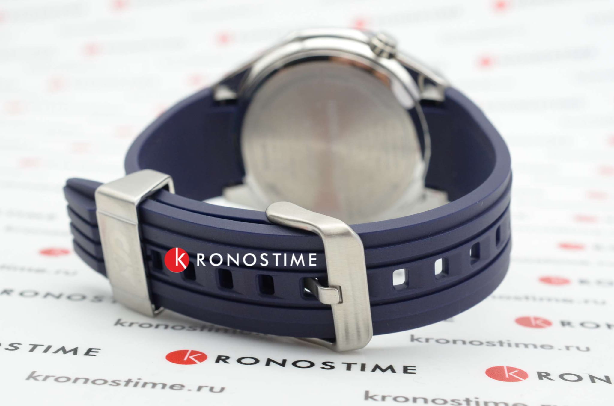 Ремешок из синего полимера оснащён стандартной классической застёжкой, обеспечивающей комфортное ношение и надёжную фиксацию на запястье. Водозащита до 200 метров (20 бар) позволяет использовать часы при плавании и дайвинге.