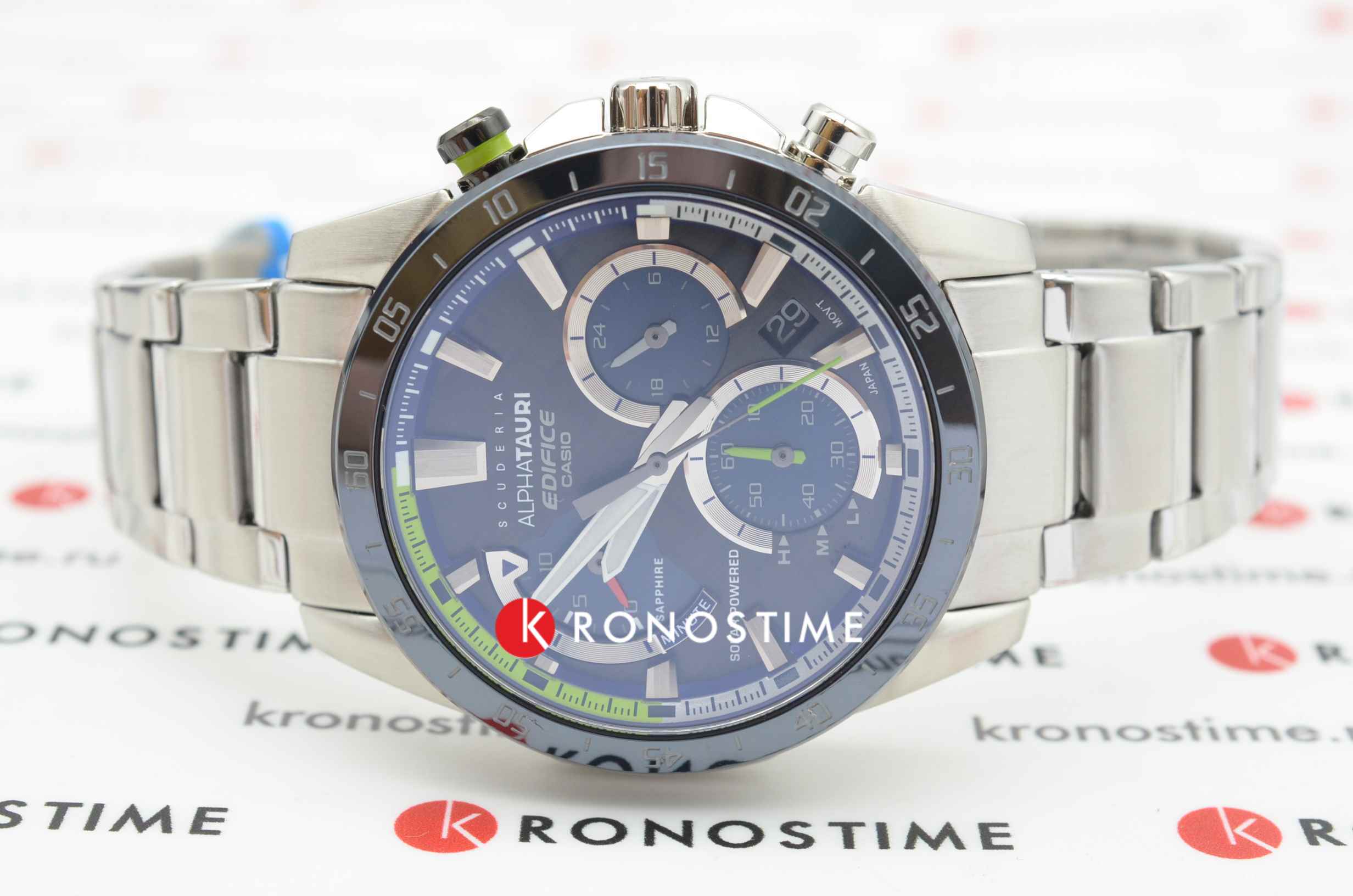 Часы Casio Edifice EFS-S580AT-1AER из лимитированной серии, созданной в коллаборации с итальянской гоночной командой Формулы-1 Scuderia AlphaTauri. Внутренний корпус часов изготовлен из того же углеродного волокна 6K, что используется в аэродинамических крыльях гоночной машины Scuderia AlphaTauri. Элементы циферблата и секундная стрелка окрашены в флуоресцентный желтый цвет, который используется на трассах Формулы-1 для безопасности.