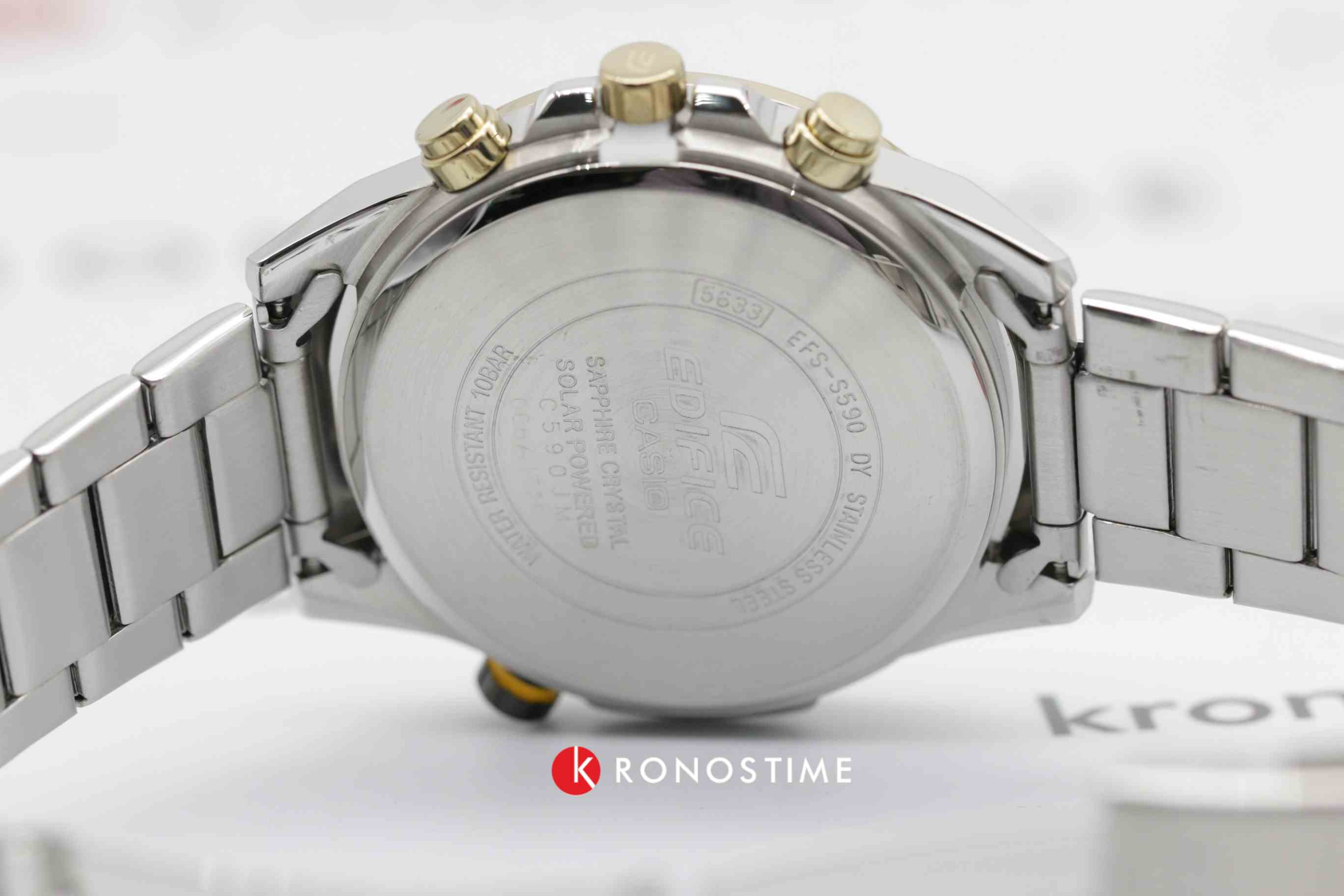 Спортивные мужские часы на солнечной батарее с хронографом Casio Edifice EFS-S590SG-1A, кварцевый механизм с высокой точностью. Сапфировое стекло устойчивое к появлению царапин, обладающее высокой прозрачностью. Класс водозащиты: 100 метров, позволит плавать, нырять и заниматься другими водными видами спорта. Корпус часов изготовлен из стали, цвета.