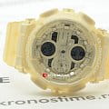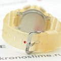 Компактный аксессуар имеет дизайн в скелетонизорованном формате. Полимерный корпус и ремешок бежевого цвета изготовлены в полупрозрачном исполнении. Циферблат с минеральным стеклом наделён винтажными элементами: окошки и стрелки оформлены в духе музыкальных проигрывателей эпохи 90-х. Модель обладает противоударным корпусомУдаропрочный корпусМеханизм заключён в корпус, выполненный из современных материалов, устойчивых к ударам, механическим повреждениям и падению с высоты: инновационный пластик, карбон, нержавеющая сталь, титан., выдерживающим удары, вибрации, падение с высоты. Наручные часы станут идеальным вариантом для девушки, придерживающейся активного образа жизни. Японский кварцевый калибр характеризуется точностью хода +/- 15 секунд в месяц. Он работает от батарейки с 2-летним сроком службы. Часы подходят для плавания и ныряния, так как сохраняют водонепроницаемость при давлении до 20 бар. Циферблат подсвечивается LED-диодом Светодиодная подсветкаСветодиодная или LED-подсветка обеспечивает появление яркого холодного свечения за счёт LED-элементов - маленьких лампочек. Они потребляют минимальное количество энергии, чаще всего можно встретить 1 светодиод, в нижней части циферблата., функция автоподсветки активируется при поднесении часов к лицу. Функции: секундомер с точностью в 1/1000 секунды, хронографХронографФункция позволяет измерять отрезки времени с особой точностью: часы, минуты, секунды. Верным признаком хронографа является наличие на циферблате 3 дополнительных окошек-счётчиков., будильник, мировое времяМировое время Полезное часовое усложнение, отображающее время в основных городах и известных областях по всему миру, оно связано с часовыми поясами, удобно для путешественников и бизнесменов. – 48 городов, календарь, таймер, индикация средней скорости пройденного маршрута. Габариты: 49 x 45,9 x 15,8 мм.