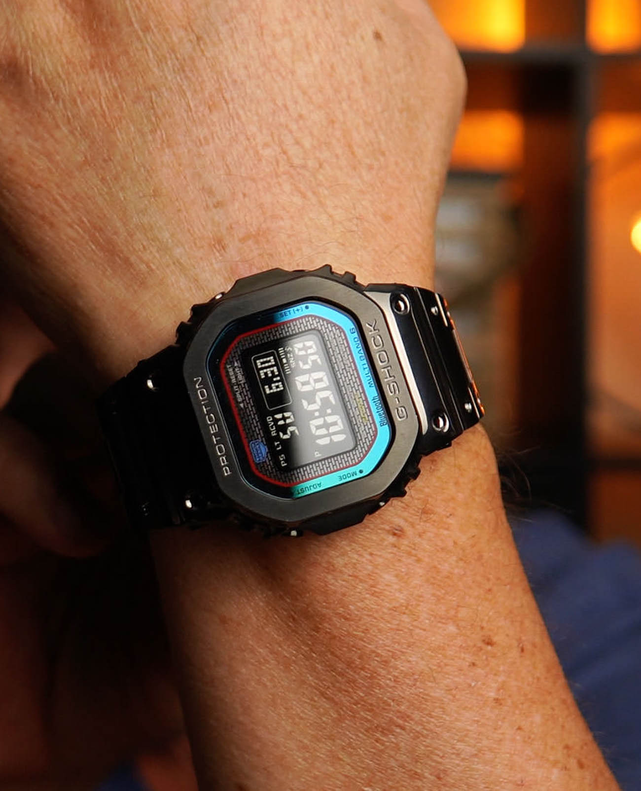Японские мужские часы Casio G-Shock GMW-B5000BPC-1. Минеральное стеклоМинеральное стеклоМинеральное стекло представляет собой искусственно выращенный минерал кварца. Такое стекло отличается особой устойчивостью к повреждениям и царапинам. Уступает по некоторым качествам сапфировому стеклу. устойчивое к появлению царапин, обладающее высокой прозрачностью. Ударопрочный корпусУдаропрочный корпусМеханизм заключён в корпус, выполненный из современных материалов, устойчивых к ударам, механическим повреждениям и падению с высоты: инновационный пластик, карбон, нержавеющая сталь, титан. и ремешок выполнены из нержавеющей стали с IP-покрытиемIP-покрытиеМетод ионного напыления. Демонстрирует повышенную устойчивость к истиранию, окислению и химическим веществам. Под воздействием высокого давления и температуры около 1500°C молекулы металла надёжно соединяются с частицами корпуса часов., обеспечивающий максимально высокий уровень защиты часов от механических повреждений. Tough SolarTough SolarТехнология основана на подзарядке аккумулятора от источника солнечного света, специальная панель улавливает солнечные лучи и преобразует их в энергию для работы часов. Достаточно пары минут нахождения на солнце для функционирования часов в течении суток.. Часы оснащены технологией BluetoothBluetoothСовременная технология, позволяющая синхронизировать часы с телефоном и переносить данные. Часы с Bluetooth расширяют возможности вашего смартфона и делают его использование ещё более удобным., которая предлагает энергосберегающую возможность передачи данных нажатием кнопки. С помощью Bluetooth вы можете подключить часы к смартфону, не используя провод, и получить доступ к целому ряду полезных функций. Если часы подключены к смартфону, время устанавливается автоматически. Мировое времяМировое время Полезное часовое усложнение, отображающее время в основных городах и известных областях по всему миру, оно связано с часовыми поясами, удобно для путешественников и бизнесменов. в 29 различных часовых поясах. БудильникБудильникБуди́льник — часы, в заданный момент времени подающие звуковой, световой и/или в редких случаях другой сигнал., секундомерСекундомерСекундоме́р — прибор, способный измерять интервалы времени с точностью до долей секунды., таймерТаймерОтсчитывает секунды в обратном направлении в заданном интервале времени. и функция поиска телефона. После нажатия на кнопку, ваш потерянный телефон издаст звуковой сигнал. Класс водозащиты: 200 метров, позволит плавать, нырять и заниматься другими водными видами спорта. Стальной браслет с IP-покрытиемIP-покрытиеМетод ионного напыления. Демонстрирует повышенную устойчивость к истиранию, окислению и химическим веществам. Под воздействием высокого давления и температуры около 1500°C молекулы металла надёжно соединяются с частицами корпуса часов. на раскладной застёжкеРаскладная застёжкаТакой тип застёжки используется только на браслетах из металла. Она никогда не раскрывается полностью, происходит разделение на 2 и более частей. Раскладывающая застёжка снизит вероятность потери часов к минимуму..