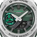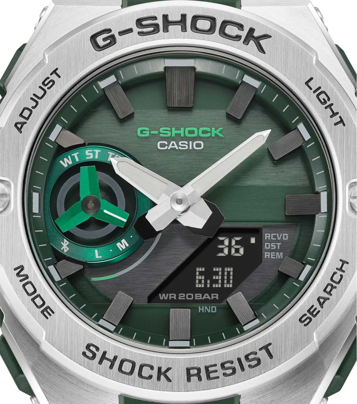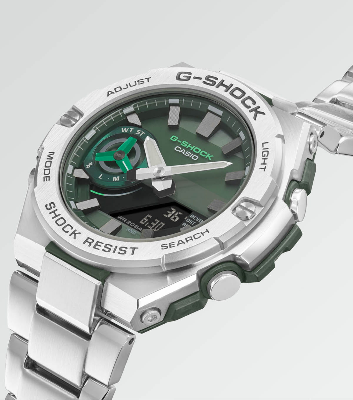Японские мужские часы-хронографХронографФункция позволяет измерять отрезки времени с особой точностью: часы, минуты, секунды. Верным признаком хронографа является наличие на циферблате 3 дополнительных окошек-счётчиков. с минеральным стекломМинеральное стеклоМинеральное стекло представляет собой искусственно выращенный минерал кварца. Такое стекло отличается особой устойчивостью к повреждениям и царапинам. Уступает по некоторым качествам сапфировому стеклу. Casio G-Shock GST-B500AD-3A, кварцевый механизм с высокой точностью. Линейка GST-B500 объединяет в себе все самое необходимое, что нужно современным мужчинам. Питание от солнечной энергии Tough SolarTough SolarТехнология основана на подзарядке аккумулятора от источника солнечного света, специальная панель улавливает солнечные лучи и преобразует их в энергию для работы часов. Достаточно пары минут нахождения на солнце для функционирования часов в течении суток. солнечные батарейки большой мощности, индикатор заряда батареи. Функция автоматического сохранения энергии. Время работы аккумулятора без подзарядки приблизительно 7 месяцев, при включенной функции сохранения энергии приблизительно 18 месяцев. Механизм часов помещен в корпус из прочного материала, который надежно защищает от внешних воздействий, от ударов и вибрации. Carbon Core GuardCarbon Core Guard Новейшая структура корпуса, разработанная Casio. Полиуретановая пластина дополнительно усилена карбоновыми вставками, что придаёт специальную защиту от механических повреждений. Карбон отличается лёгкостью и прочностью. объединяет корпус и заднюю крышку в единый карбоновый моноблок. Ударопрочный корпусУдаропрочный корпусМеханизм заключён в корпус, выполненный из современных материалов, устойчивых к ударам, механическим повреждениям и падению с высоты: инновационный пластик, карбон, нержавеющая сталь, титан. из стали и полимерного материала защищает механизм от ударов и вибрации. Двойная светодиодная белая подсветка Super Illuminator с функцией Afterglow, одновременно подсвечивается аналоговый циферблат и цифровой дисплей. Светонакопительное покрытие NeobriteПодсветка NeobriteИспользование светонакопительных составов на основе сульфида цинка или алюмината стронция, яркий свет можно наблюдать на протяжении 6-10 часов после «зарядки» часов около источника света.  обеспечивает длительное послесвечение в темноте даже после кратковременного нахождения на свету. Сплит-хронографСплит-хронографИспользуется для измерения продолжительности нескольких временных отрезков, начинающихся одновременно, а заканчивающихся в разное время.. ТаймерТаймерОтсчитывает секунды в обратном направлении в заданном интервале времени. обратного отсчета от 1 секунды до 1 часа. Мировое времяМировое время Полезное часовое усложнение, отображающее время в основных городах и известных областях по всему миру, оно связано с часовыми поясами, удобно для путешественников и бизнесменов.  – 38 часовых поясов, всемирное координированное время (UTCUTCВсемирное кординационное время, не имеющее привязки к географическому положению Гринвича, основывается на атомном отсчёте времени. Регулировка времени осуществляется более точно, чем устаревшее GMT.