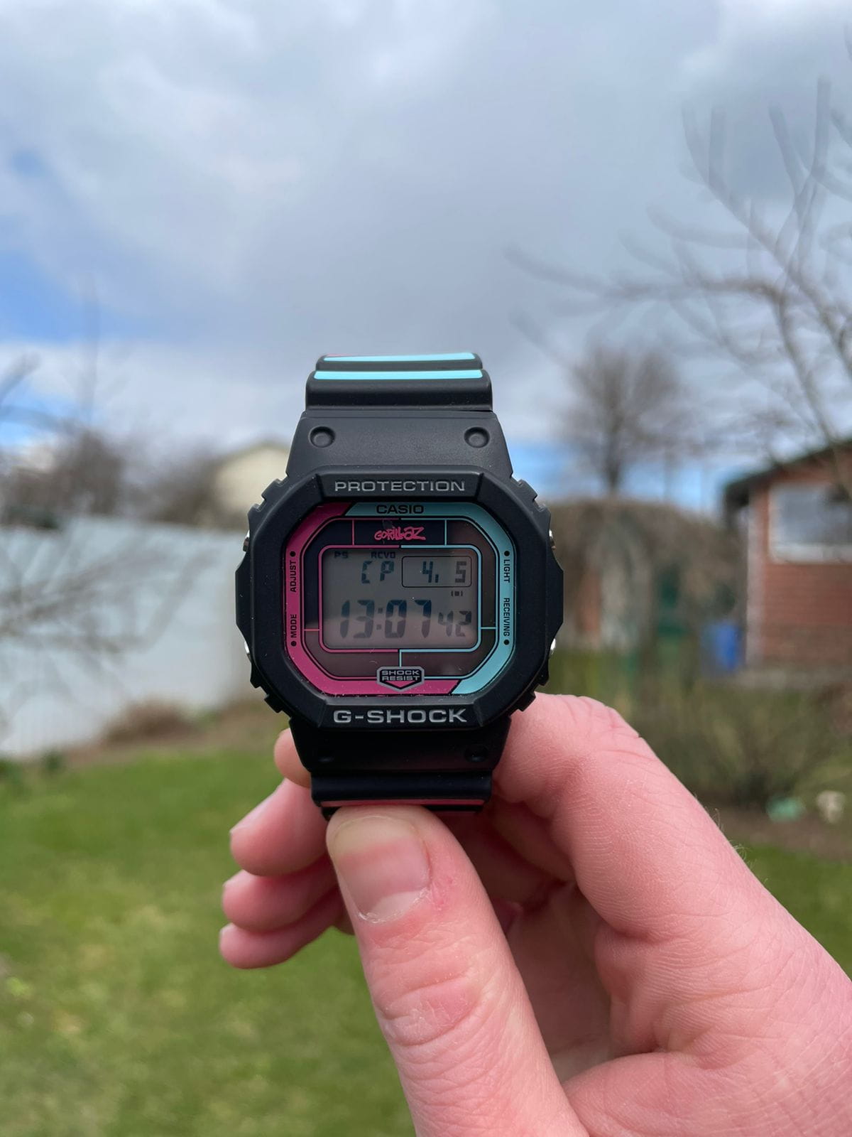 Наручные часы с классическим для Casio прямоугольным корпусом выполнены в стилистике последнего альбома Gorillaz "Now Now", акцент сделан на сочетании голубых и розовых тонов. При включении светодиодной подсветка на дисплее появляется двухцветная надпись "Now". Питание от солнечной батареи. Ударопрочный корпусУдаропрочный корпусМеханизм заключён в корпус, выполненный из современных материалов, устойчивых к ударам, механическим повреждениям и падению с высоты: инновационный пластик, карбон, нержавеющая сталь, титан. из полимерного пластика. Водонепроницаемость WR 200. Функции: BluetoothBluetoothСовременная технология, позволяющая синхронизировать часы с телефоном и переносить данные. Часы с Bluetooth расширяют возможности вашего смартфона и делают его использование ещё более удобным., секундомер, хронографХронографФункция позволяет измерять отрезки времени с особой точностью: часы, минуты, секунды. Верным признаком хронографа является наличие на циферблате 3 дополнительных окошек-счётчиков., будильник, мировое время, UTCUTCВсемирное кординационное время, не имеющее привязки к географическому положению Гринвича, основывается на атомном отсчёте времени. Регулировка времени осуществляется более точно, чем устаревшее GMT.
