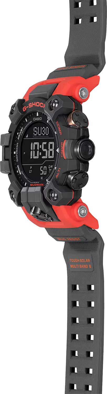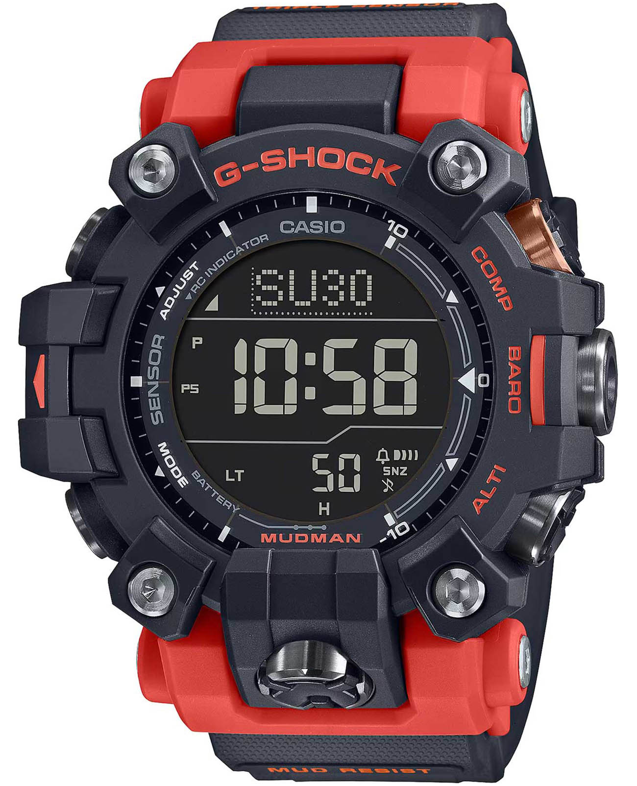 Линейка часов Master of G создана для настоящих мужчин, для которых экстрим и приключения это не просто слова. Мужские японские часы-хронографХронографФункция позволяет измерять отрезки времени с особой точностью: часы, минуты, секунды. Верным признаком хронографа является наличие на циферблате 3 дополнительных окошек-счётчиков. с секундомеромСекундомерСекундоме́р — прибор, способный измерять интервалы времени с точностью до долей секунды. Casio G-Shock GW-9500-1A4, кварцевый механизм с высокой точностью. Класс водозащиты: 200 метров, позволит плавать, нырять и заниматься другими водными видами спорта. Корпус часов изготовлен из пластика. Часы Master Of G Mudman спроектированы и разработаны специально для работы в суровых условиях. Корпус и ремешок выполнены из биопластика, который изготавливается из возобновляемых органических ресурсов. Питание от солнечной энергии Tough SolarTough SolarТехнология основана на подзарядке аккумулятора от источника солнечного света, специальная панель улавливает солнечные лучи и преобразует их в энергию для работы часов. Достаточно пары минут нахождения на солнце для функционирования часов в течении суток. - солнечные батарейки большой мощности, индикатор низкого заряда батареи. Функция автоматического сохранения энергии. Время работы аккумулятора без подзарядки до 6 месяцев, при включенной функции сохранения энергии до 26 месяцев. Структура Carbon Core GuardCarbon Core Guard Новейшая структура корпуса, разработанная Casio. Полиуретановая пластина дополнительно усилена карбоновыми вставками, что придаёт специальную защиту от механических повреждений. Карбон отличается лёгкостью и прочностью.. Ударопрочный корпусУдаропрочный корпусМеханизм заключён в корпус, выполненный из современных материалов, устойчивых к ударам, механическим повреждениям и падению с высоты: инновационный пластик, карбон, нержавеющая сталь, титан. с карбоновыми волокнами более прочный и, в то же время, более легкий. Этот же материал защищает внутренний модуль от повреждений и деформаций при ударах. Защита от попадания внутрь пыли и грязи. Модуль часов рассчитан на работу при низких температурах до -10°С/14°F. Циферблат подсвечивается светодиодом. Настраиваемое послесвечение 1,5 или 3сек. Цвет подсветки: белый. 12-ти и 24-х часовой формат времени. Секундомер с точностью показаний 1/10с и временем измерения 1000ч. Сплит-хронографСплит-хронографИспользуется для измерения продолжительности нескольких временных отрезков, начинающихся одновременно, а заканчивающихся в разное время.. ТаймерТаймерОтсчитывает секунды в обратном направлении в заданном интервале времени. обратного отсчета времени от 1мин до 24ч. Мировое времяМировое время Полезное часовое усложнение, отображающее время в основных городах и известных областях по всему миру, оно связано с часовыми поясами, удобно для путешественников и бизнесменов.  – 48 городов (31 часовой пояс), всемирное координированное время (UTCUTCВсемирное кординационное время, не имеющее привязки к географическому положению Гринвича, основывается на атомном отсчёте времени. Регулировка времени осуществляется более точно, чем устаревшее GMT.