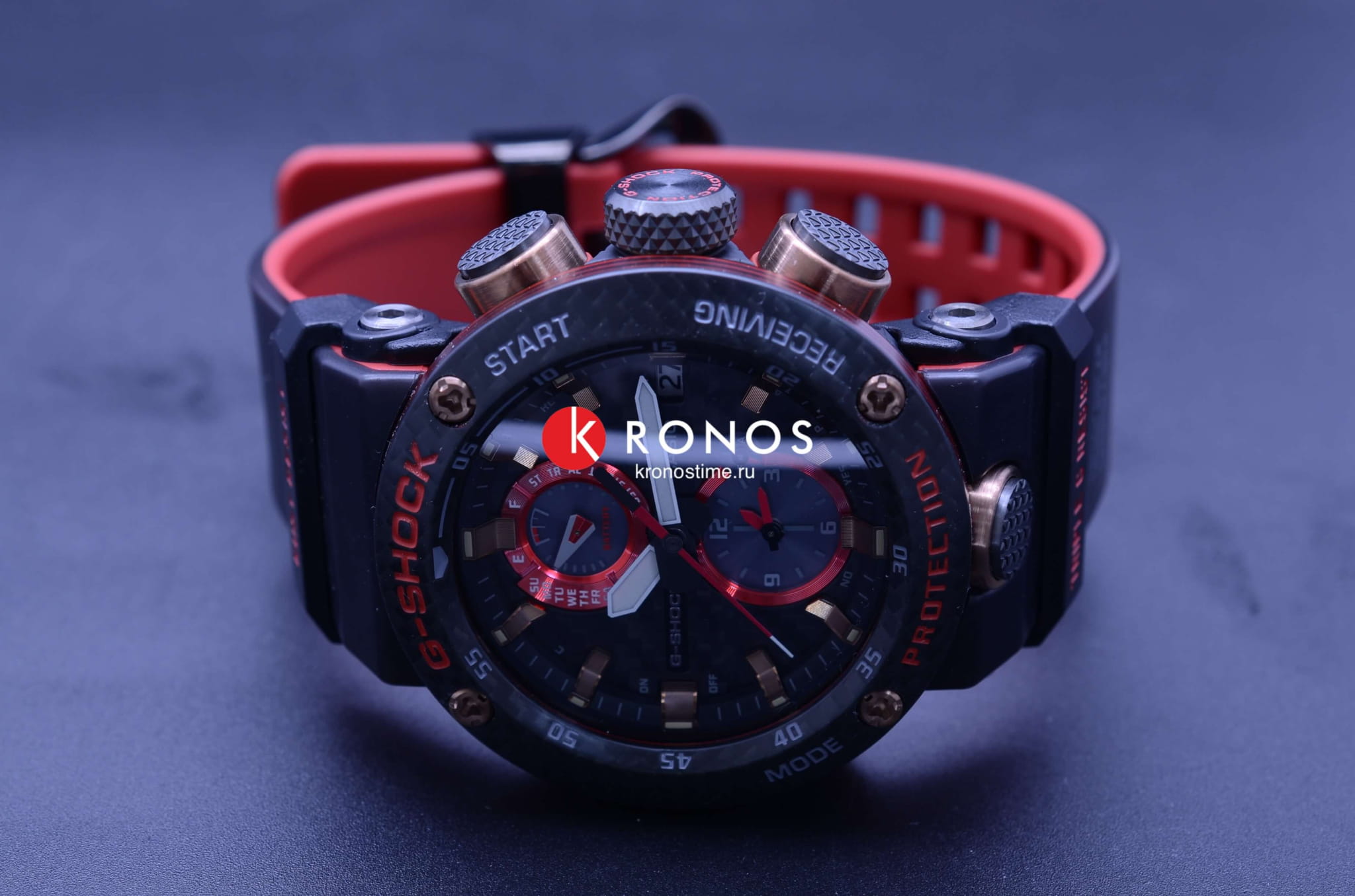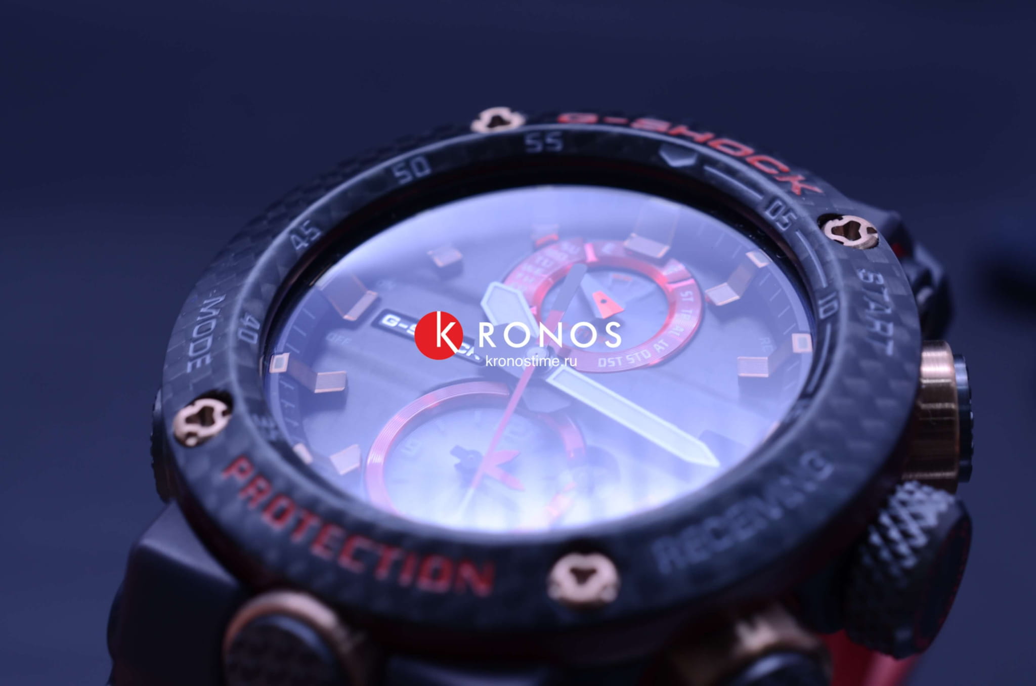 Внушительный аксессуар стильно смотрится на широком запястье, гармонично смотрятся крупные детали в красном и бронзовом цвете. Задняя крышка здесь отсутствует, ударопрочный корпусУдаропрочный корпусМеханизм заключён в корпус, выполненный из современных материалов, устойчивых к ударам, механическим повреждениям и падению с высоты: инновационный пластик, карбон, нержавеющая сталь, титан. сделан из монолитного углеродного монокока, вдохновлённого конструкцией ранних самолётов. Он состоит из 52 карбоновых слоёв, уникальная текстура просматривается на боковых частях безеляБезельВнешний ободок, закрепляющий стекло. В спортивных часах так называется поворотное кольцо с делениями на циферблате, выполняет роль таймера – замеряет отрезки времени на шкале. Неподвижный безель – элемент декора. Однонаправленно вращающийся безель на дайверских часах позволяет фиксировать моменты погружения и выныривания на поверхность. – с успехом реализована технология Carbon Core GuardCarbon Core Guard Новейшая структура корпуса, разработанная Casio. Полиуретановая пластина дополнительно усилена карбоновыми вставками, что придаёт специальную защиту от механических повреждений. Карбон отличается лёгкостью и прочностью.. Полимерный ремешок тоже имеет усиление карбоновыми волокнами. Наручные часы обладают полезным функционалом: BluetoothBluetoothСовременная технология, позволяющая синхронизировать часы с телефоном и переносить данные. Часы с Bluetooth расширяют возможности вашего смартфона и делают его использование ещё более удобным., будильник, мировое времяМировое время Полезное часовое усложнение, отображающее время в основных городах и известных областях по всему миру, оно связано с часовыми поясами, удобно для путешественников и бизнесменов. , таймер, приём радиосигнала, питание от солнечной батареи . Сапфировое стекло с антибликовой обработкой. Яркая люминесцентная подсветкаЛюминесцентное покрытиеПозволяет считывать показания времени в темноте. Производители наносят на стрелки, часовые индексы, безель или поверхность циферблата светонакопительный состав, дающий холодное свечение.. Габариты: 50,1 x 46,4 x 16,9 мм.