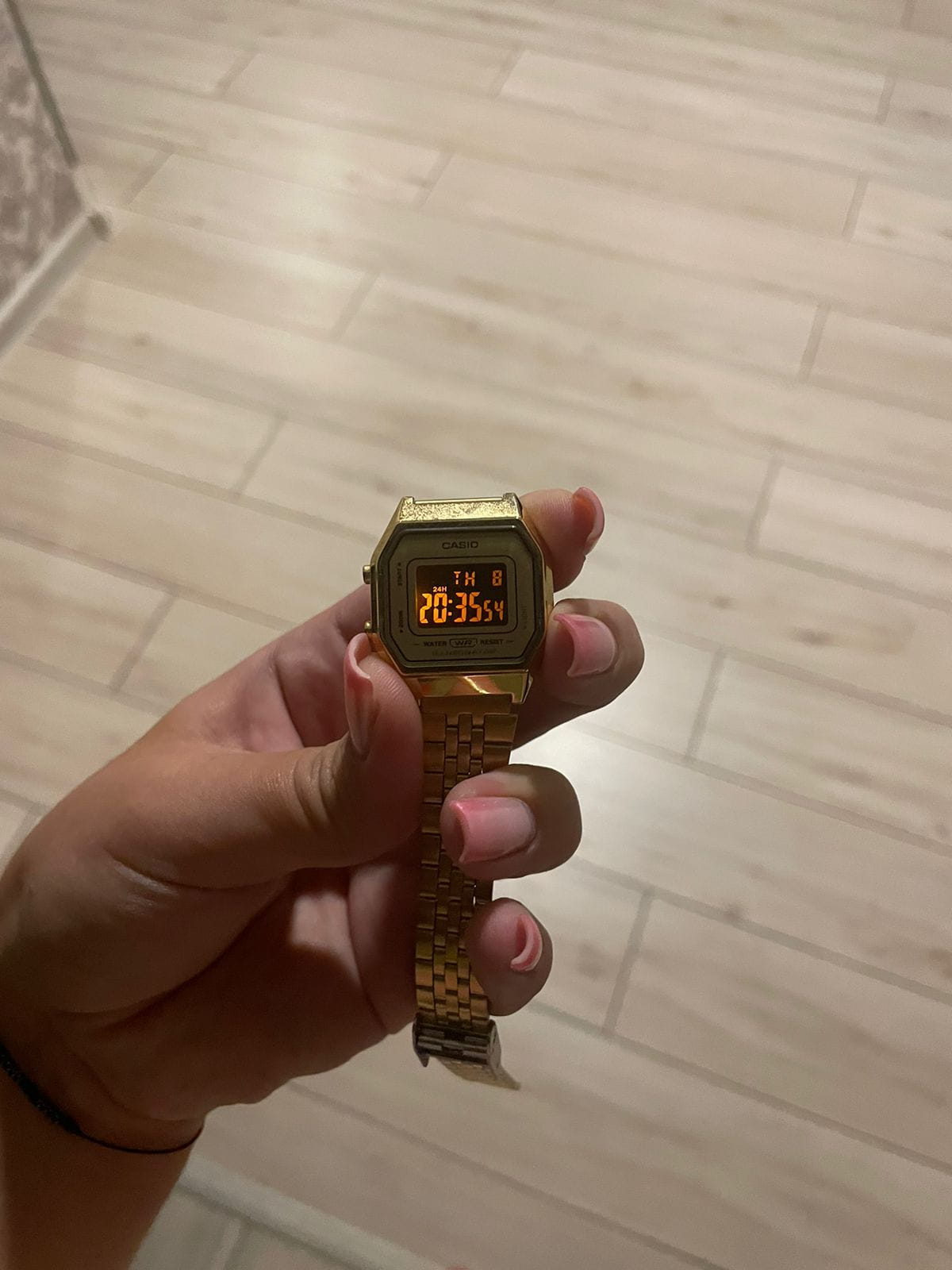 Электронные часы Casio Vintage LA680WGA-9B в ретро стиле. Браслет из стали с IP-покрытиемIP-покрытиеМетод ионного напыления. Демонстрирует повышенную устойчивость к истиранию, окислению и химическим веществам. Под воздействием высокого давления и температуры около 1500°C молекулы металла надёжно соединяются с частицами корпуса часов.. Водостойкость WR 30, 30 метров, позволит защитить корпус от случайных брызг или капель дождя. Циферблат подсвечивается светодиодомСветодиодная подсветкаСветодиодная или LED-подсветка обеспечивает появление яркого холодного свечения за счёт LED-элементов - маленьких лампочек. Они потребляют минимальное количество энергии, чаще всего можно встретить 1 светодиод, в нижней части циферблата.. СекундомерСекундомерСекундоме́р — прибор, способный измерять интервалы времени с точностью до долей секунды. с точностью показаний 1/100с и временем измерения 1ч. Сплит-хронографСплит-хронографИспользуется для измерения продолжительности нескольких временных отрезков, начинающихся одновременно, а заканчивающихся в разное время.. Батарея рассчитана на 5 лет. Задняя крышка крепится на 4-х винтах.