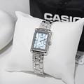 Casio LTP-1234DS-2A — женские часы с элегантным прямоугольным корпусом, сочетающие классический дизайн и практичность. Корпус из нержавеющей стали имеет размеры 32 × 21 мм и толщину всего 7,4 мм, благодаря чему модель смотрится утончённо и удобно сидит на запястье. Циферблат выполнен из перламутра, что придаёт ему мягкое сияние и глубину. Лаконичная разметка и тонкие стрелки подчёркивают изысканность модели. Поверхность защищена прочным минеральным стекломМинеральное стеклоМинеральное стекло представляет собой искусственно выращенный минерал кварца. Такое стекло отличается особой устойчивостью к повреждениям и царапинам. Уступает по некоторым качествам сапфировому стеклу., устойчивым к царапинам и сохраняющим безупречный внешний вид. Точный кварцевый механизм обеспечивает стабильный ход и не требует подзавода. Питание осуществляется от батарейки с ресурсом до 3 лет. Браслет из нержавеющей стали оснащён удобной раскладной застёжкойРаскладная застёжкаТакой тип застёжки используется только на браслетах из металла. Она никогда не раскрывается полностью, происходит разделение на 2 и более частей. Раскладывающая застёжка снизит вероятность потери часов к минимуму., которая обеспечивает надёжную фиксацию и лёгкость в использовании. Водозащита уровня WR позволяет не бояться случайных брызг или дождя. LTP-1234DS-2A — утончённая модель для повседневной носки, сочетающая в себе надёжность, комфорт и классическую элегантность.