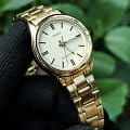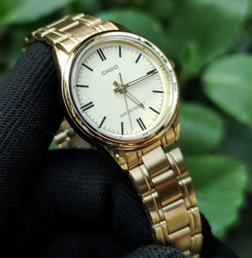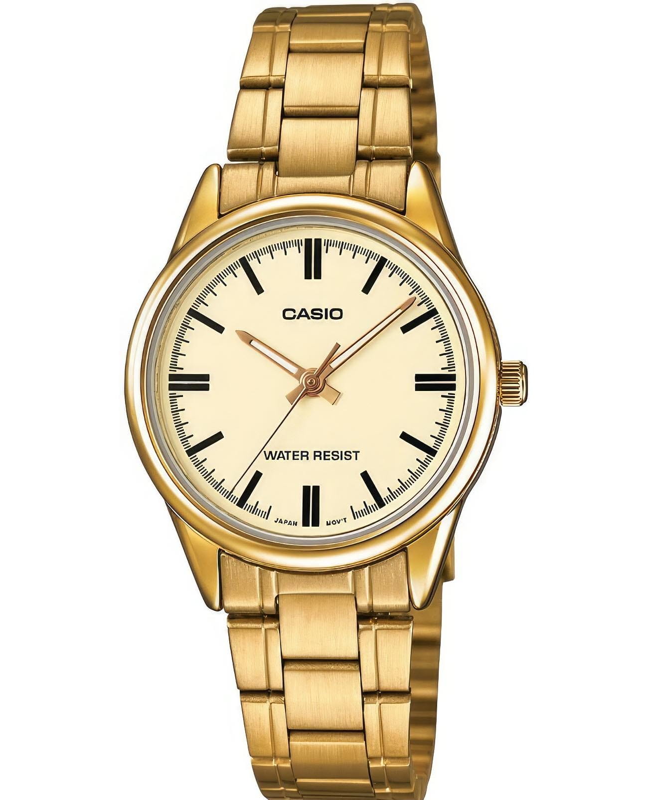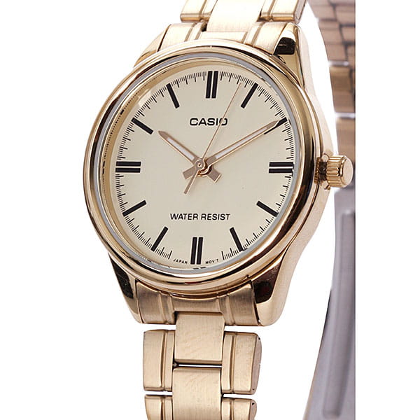 Японские женские часы LTP-V005G-9A изящно смотрятся на запястье, они привлекают классическим исполнением и правильной геометрией. Минималистичная модель станет отличным решением для любого случая: на работу, переговоры с деловыми партнёрами, прогулку с друзьями или праздничный вечер. Отсутствуют лишние детали, что позволяет часам быть актуальными на долгие годы. Циферблат с люминесцентным покрытиемЛюминесцентное покрытиеПозволяет считывать показания времени в темноте. Производители наносят на стрелки, часовые индексы, безель или поверхность циферблата светонакопительный состав, дающий холодное свечение. стрелок, дополнен минеральным стекломМинеральное стеклоМинеральное стекло представляет собой искусственно выращенный минерал кварца. Такое стекло отличается особой устойчивостью к повреждениям и царапинам. Уступает по некоторым качествам сапфировому стеклу. , устойчивым к мелким механическим повреждениям. Корпус выполнен из нержавеющей стали с IP-покрытиемIP-покрытиеМетод ионного напыления. Демонстрирует повышенную устойчивость к истиранию, окислению и химическим веществам. Под воздействием высокого давления и температуры около 1500°C молекулы металла надёжно соединяются с частицами корпуса часов.. Модель комплектуется надёжным механизмом, точность хода которого составляет +/- 20 сек/мес. Стальной браслет на раскладной застёжкеРаскладная застёжкаТакой тип застёжки используется только на браслетах из металла. Она никогда не раскрывается полностью, происходит разделение на 2 и более частей. Раскладывающая застёжка снизит вероятность потери часов к минимуму. с IP-покрытиемIP-покрытиеМетод ионного напыления. Демонстрирует повышенную устойчивость к истиранию, окислению и химическим веществам. Под воздействием высокого давления и температуры около 1500°C молекулы металла надёжно соединяются с частицами корпуса часов.. Водостойкость: 30 метров, позволит защитить корпус от случайных брызг или капель дождя.