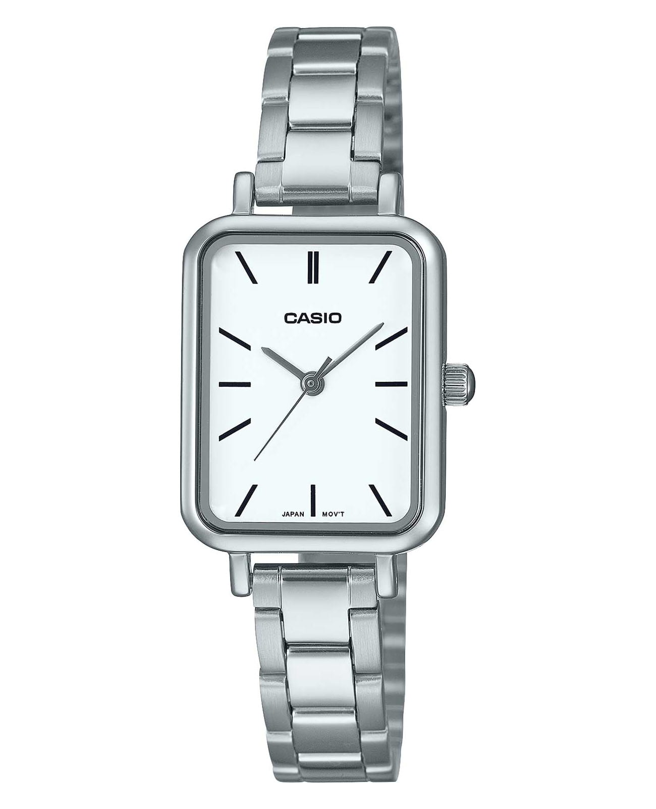 Японские женские часы LTP-V009D-7E с минеральным стекломМинеральное стеклоМинеральное стекло представляет собой искусственно выращенный минерал кварца. Такое стекло отличается особой устойчивостью к повреждениям и царапинам. Уступает по некоторым качествам сапфировому стеклу. из коллекции LTP изящно смотрятся на запястье, они привлекают классическим исполнением и правильной геометрией. Минималистичная модель станет отличным решением для любого случая: на работу, переговоры с деловыми партнёрами, прогулку с друзьями или праздничный вечер. Отсутствуют лишние детали, что позволяет часам быть актуальными на долгие годы. Корпус выполнен из стали, отличающейся долговечностью и устойчивостью к повреждениям и царапинам. Модель комплектуется надёжным механизмом, точность хода которого составляет +/- 20 сек/мес. Стальной браслет на раскладной застёжкеРаскладная застёжкаТакой тип застёжки используется только на браслетах из металла. Она никогда не раскрывается полностью, происходит разделение на 2 и более частей. Раскладывающая застёжка снизит вероятность потери часов к минимуму..