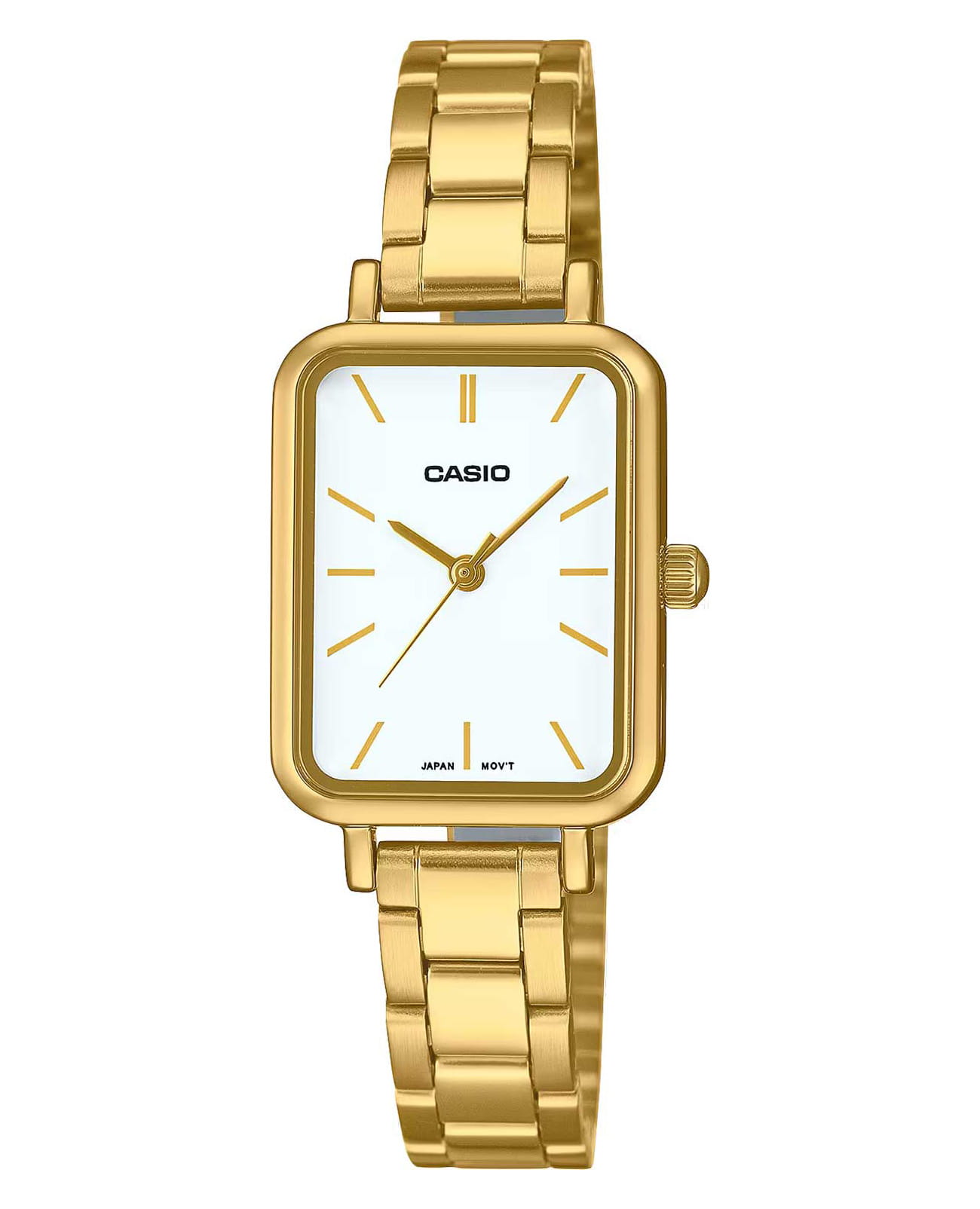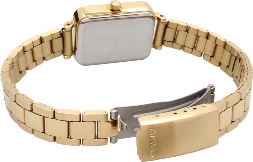 Японские женские часы LTP-V009G-7E с минеральным стекломМинеральное стеклоМинеральное стекло представляет собой искусственно выращенный минерал кварца. Такое стекло отличается особой устойчивостью к повреждениям и царапинам. Уступает по некоторым качествам сапфировому стеклу. из коллекции LTP изящно смотрятся на запястье, они привлекают классическим исполнением и правильной геометрией. Минималистичная модель станет отличным решением для любого случая: на работу, переговоры с деловыми партнёрами, прогулку с друзьями или праздничный вечер. Отсутствуют лишние детали, что позволяет часам быть актуальными на долгие годы. Корпус выполнен из стали с IP-покрытиемIP-покрытиеМетод ионного напыления. Демонстрирует повышенную устойчивость к истиранию, окислению и химическим веществам. Под воздействием высокого давления и температуры около 1500°C молекулы металла надёжно соединяются с частицами корпуса часов., отличающейся долговечностью и устойчивостью к повреждениям и царапинам. Модель комплектуется надёжным механизмом, точность хода которого составляет +/- 20 сек/мес. Стальной браслет с IP-покрытиемIP-покрытиеМетод ионного напыления. Демонстрирует повышенную устойчивость к истиранию, окислению и химическим веществам. Под воздействием высокого давления и температуры около 1500°C молекулы металла надёжно соединяются с частицами корпуса часов. на раскладной застёжкеРаскладная застёжкаТакой тип застёжки используется только на браслетах из металла. Она никогда не раскрывается полностью, происходит разделение на 2 и более частей. Раскладывающая застёжка снизит вероятность потери часов к минимуму..