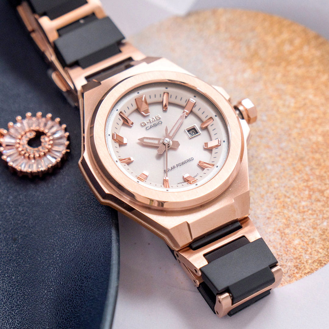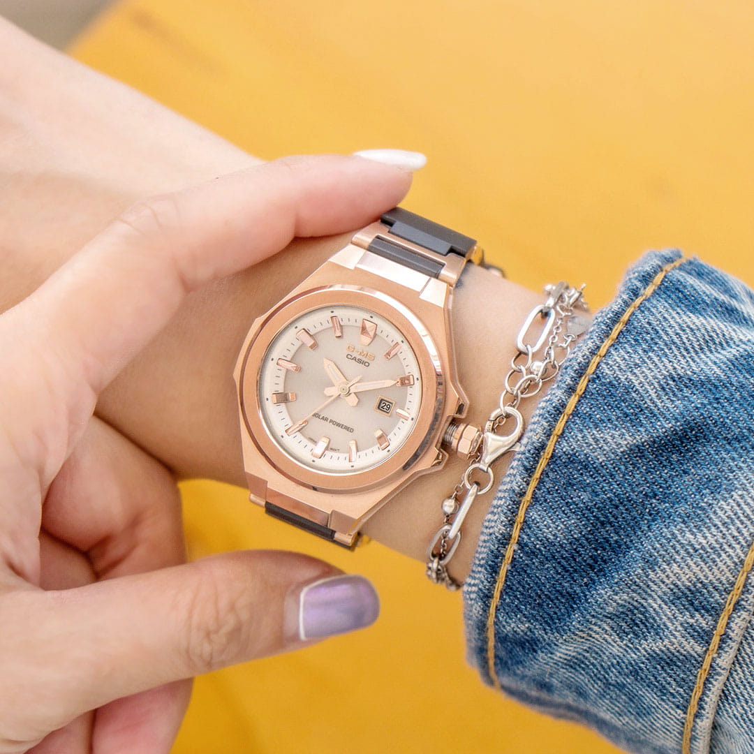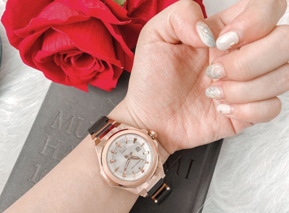 Модель сочетает несколько вариаций розового: металлизированные стрелки, индексы, пастельный оттенок металлического ремешка. Такое исполнение поможет девушкам, ведущим активный образ жизни, не забывать о своей женственной натуре. Наручные часы реализуют технологию Tough SolarTough SolarТехнология основана на подзарядке аккумулятора от источника солнечного света, специальная панель улавливает солнечные лучи и преобразует их в энергию для работы часов. Достаточно пары минут нахождения на солнце для функционирования часов в течении суток., получая питание от солнца и искусственных источников света. При полностью зараженной батарейке японский кварцевый механизм способен проработать до 5 месяцев без подзарядки. Противоударный корпусУдаропрочный корпусМеханизм заключён в корпус, выполненный из современных материалов, устойчивых к ударам, механическим повреждениям и падению с высоты: инновационный пластик, карбон, нержавеющая сталь, титан. сделан из нержавеющей стали 316L, что позволяет не бояться последствий ударов, падения. Циферблат оснащён минеральным стеклом, оно отличается прочностью, устойчивостью к образованию царапин. Водостойкость до 10 бар. Стрелки покрыты светонакопительным люминесцентным составомЛюминесцентное покрытиеПозволяет считывать показания времени в темноте. Производители наносят на стрелки, часовые индексы, безель или поверхность циферблата светонакопительный состав, дающий холодное свечение.. На позиции 3 часов размещена апертура текущего числа. Габариты: 37,1 x 42,4 x 10,5 мм.