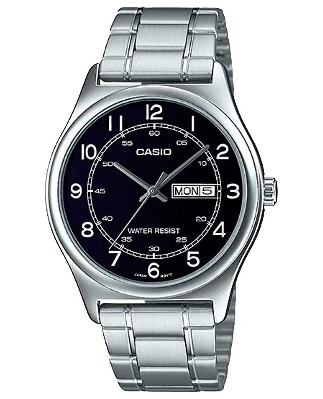 Японские мужские часы с минеральным стекломМинеральное стеклоМинеральное стекло представляет собой искусственно выращенный минерал кварца. Такое стекло отличается особой устойчивостью к повреждениям и царапинам. Уступает по некоторым качествам сапфировому стеклу. Casio Collection MTP-V006L-1B2, кварцевый механизм с высокой точностью. Корпус часов изготовлен из стали, Циферблат с метками в виде арабских цифр. Рифленая заводная головка. Батарейка рассчитана на 3 года. Раскладная застёжкаРаскладная застёжкаТакой тип застёжки используется только на браслетах из металла. Она никогда не раскрывается полностью, происходит разделение на 2 и более частей. Раскладывающая застёжка снизит вероятность потери часов к минимуму..
