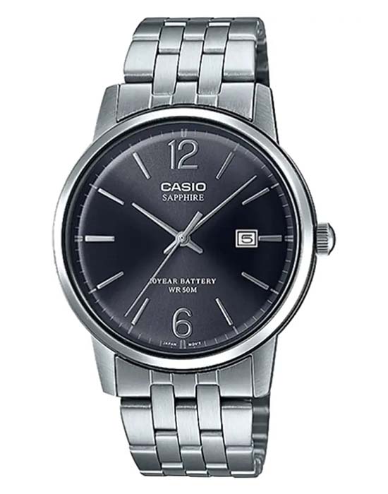 Японские наручные часы с сапфировым стеклом Casio Collection MTS-110D-1A, кварцевый механизм с высокой точностью. Сапфировое стекло устойчивое к появлению царапин, обладающее высокой прозрачностью. Класс водозащиты: 50 метров, позволит защитить корпус от случайных брызг или капель дождя. Корпус часов изготовлен из стали, серебристого цвета.