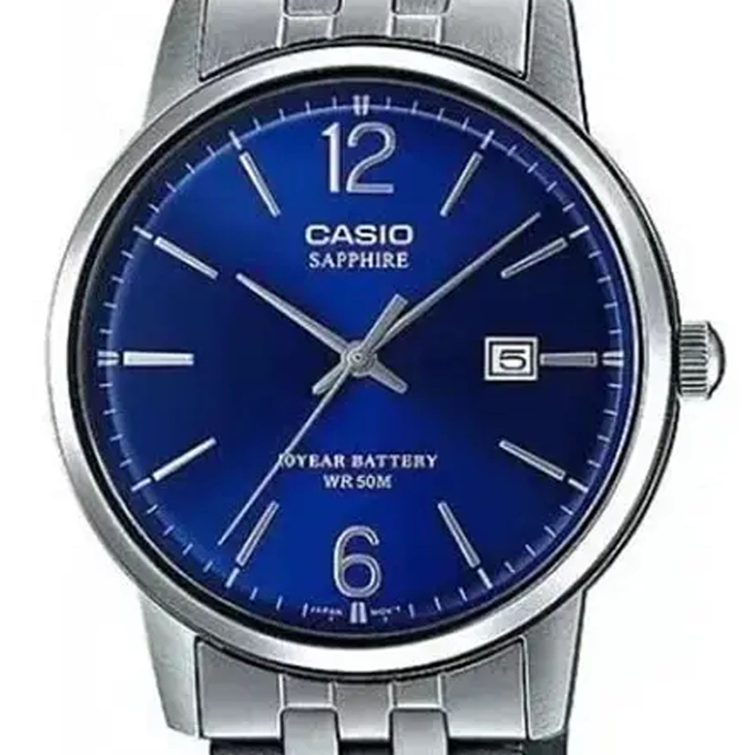 Японские наручные часы с сапфировым стеклом Casio Collection MTS-110D-2A, кварцевый механизм с высокой точностью. Сапфировое стекло устойчивое к появлению царапин, обладающее высокой прозрачностью. Класс водозащиты: 50 метров, позволит защитить корпус от случайных брызг или капель дождя. Корпус часов изготовлен из стали, серебристого цвета.