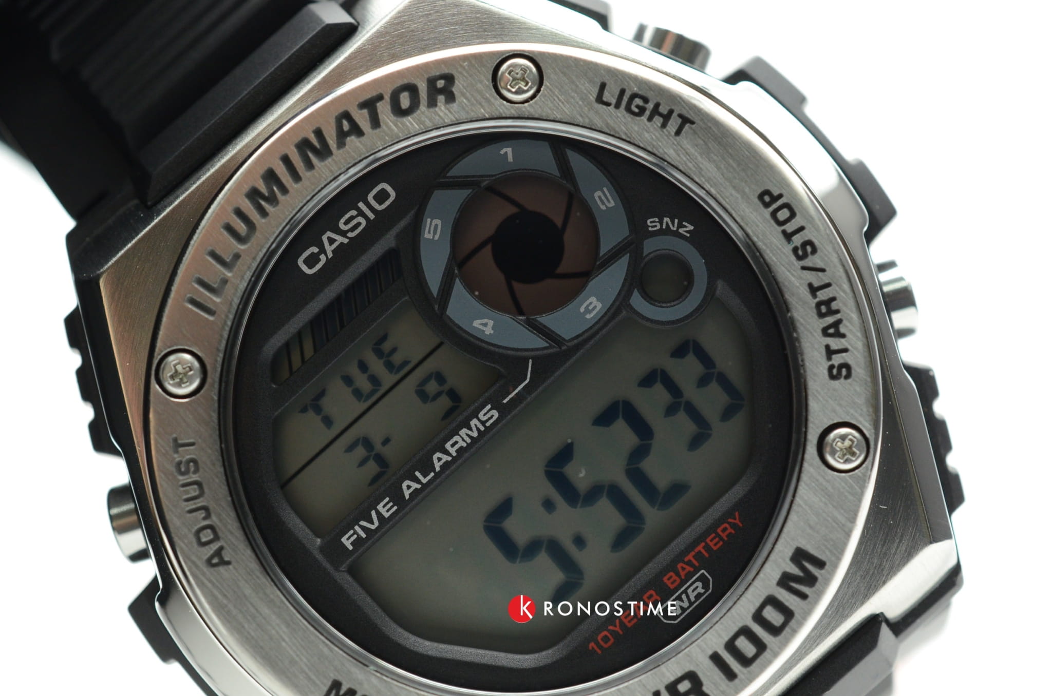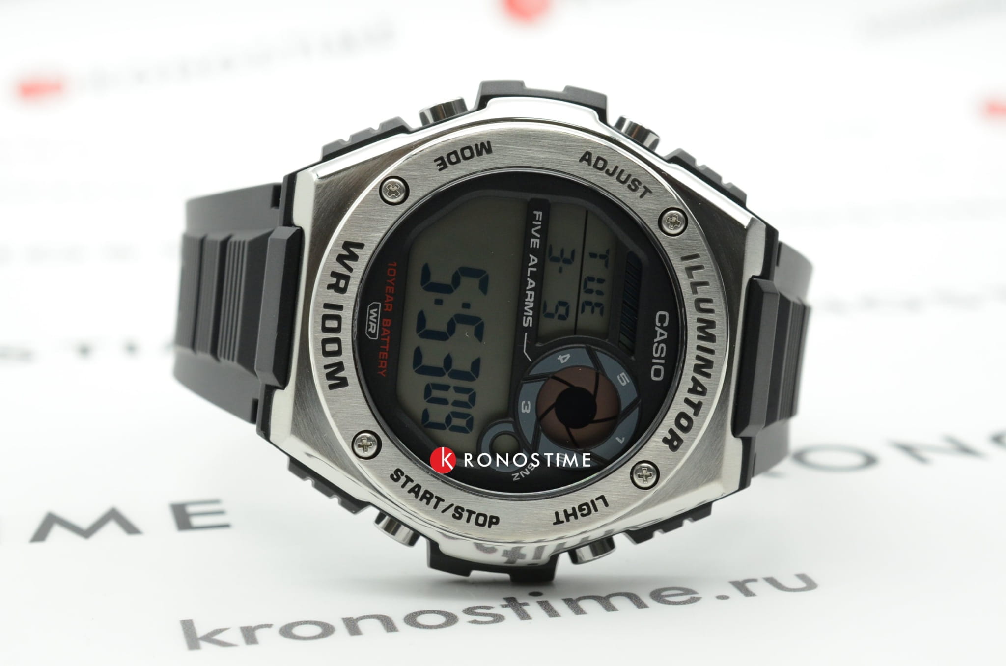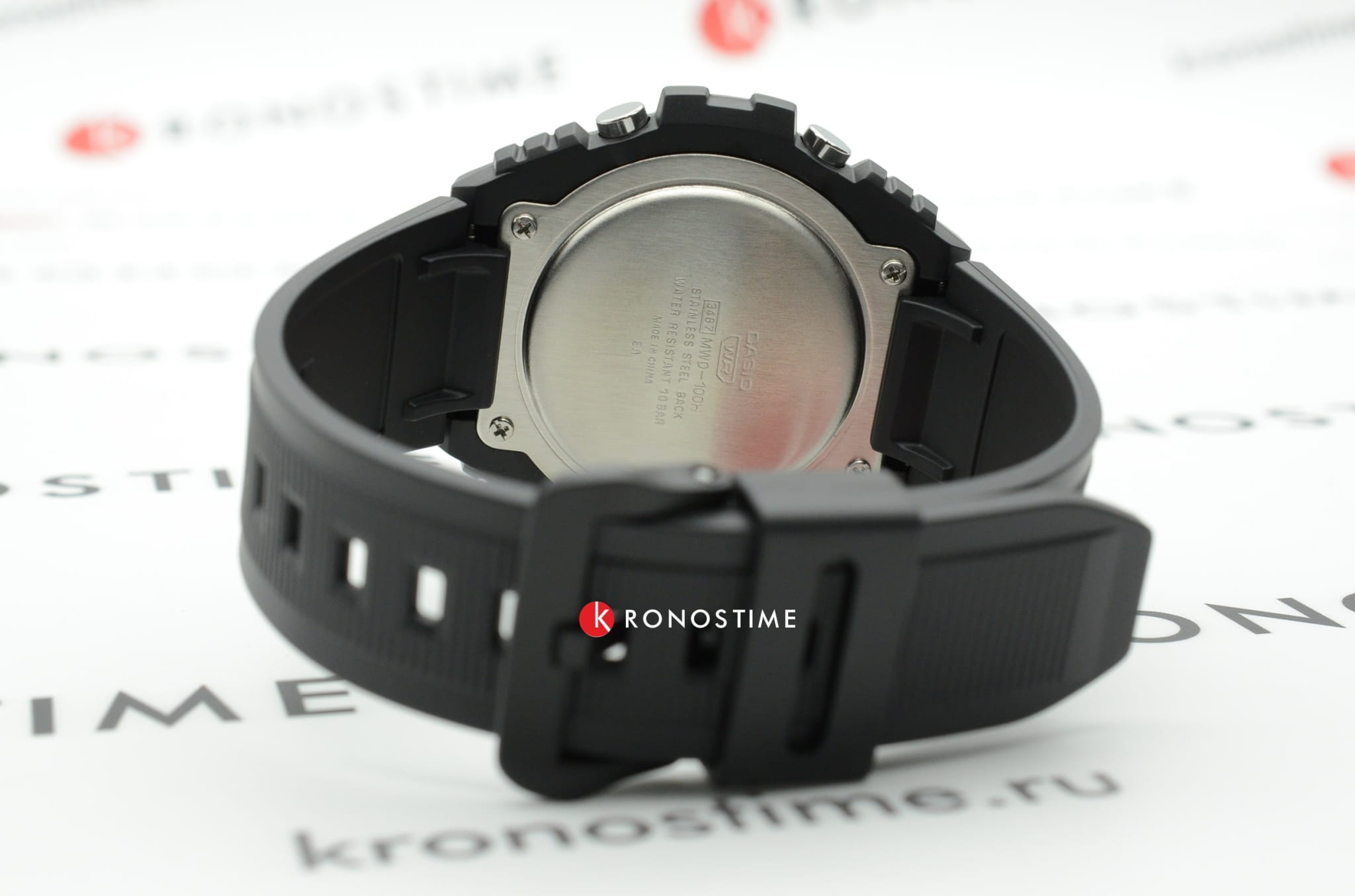 Спортивные японские мужские часы-хронографХронографФункция позволяет измерять отрезки времени с особой точностью: часы, минуты, секунды. Верным признаком хронографа является наличие на циферблате 3 дополнительных окошек-счётчиков. Casio Collection MWD-100H-1A, кварцевый механизм с высокой точностью, органическое стекло. Корпус часов изготовлен из стали и пластика. Светодиодная подсветкаСветодиодная подсветкаСветодиодная или LED-подсветка обеспечивает появление яркого холодного свечения за счёт LED-элементов - маленьких лампочек. Они потребляют минимальное количество энергии, чаще всего можно встретить 1 светодиод, в нижней части циферблата. освещает весь циферблат. Цвет подсветки: оранжевый. 12-ти и 24-х часовой формат времени. СекундомерСекундомерСекундоме́р — прибор, способный измерять интервалы времени с точностью до долей секунды. с точностью показаний 1/100с и временем измерения 1ч. Сплит-хронографСплит-хронографИспользуется для измерения продолжительности нескольких временных отрезков, начинающихся одновременно, а заканчивающихся в разное время.. Батарейка рассчитана на 10 лет. ТаймерТаймерОтсчитывает секунды в обратном направлении в заданном интервале времени. обратного отсчета от 1мин до 24ч. 5 будильниковБудильникБуди́льник — часы, в заданный момент времени подающие звуковой, световой и/или в редких случаях другой сигнал., один с функцией Snooze, ежечасный сигнал. Класс водозащиты: 100 метров, позволит плавать, нырять и заниматься другими водными видами спорта. Ремешок из полимерного материала на стандартной застежке.
