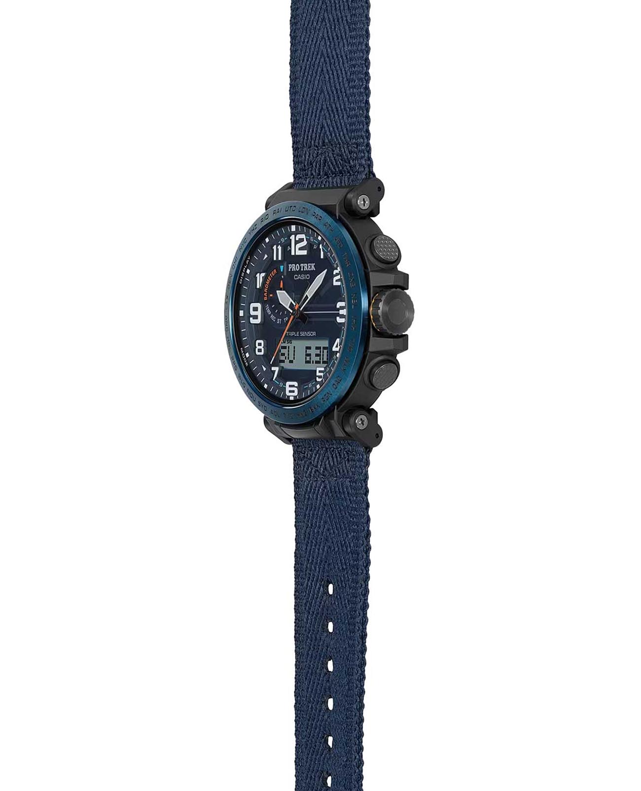 Любое ваше путешествие выйдет на новый уровень благодаря этим часам из коллекции Pro Trek. Casio Pro Trek PRG-601YB-2 для активного отдыха. Корпус и ремешок выполнены из биопластика, который изготавливается из возобновляемых органических ресурсов. Питание от солнечной энергии Tough SolarTough SolarТехнология основана на подзарядке аккумулятора от источника солнечного света, специальная панель улавливает солнечные лучи и преобразует их в энергию для работы часов. Достаточно пары минут нахождения на солнце для функционирования часов в течении суток. - солнечные батарейки большой мощности, индикатор заряда батареи. Функция автоматического сохранения энергии. Время работы аккумулятора без подзарядки приблизительно 7 месяцев, при включенной функции сохранения энергии приблизительно 25 месяцев. Модуль часов рассчитан на работу при низких температурах до -10°С/14°F. Двойная подcветка: циферблат и ЖК-дисплеи подсвечиваются светодиодом, благодаря наличию функции задержки, после отпускания кнопки освещение горит еще несколько секунд. Настраиваемое послесвечение 1,5 или 3сек. Цвет подсветки: белый. Необритовое покрытиеПодсветка NeobriteИспользование светонакопительных составов на основе сульфида цинка или алюмината стронция, яркий свет можно наблюдать на протяжении 6-10 часов после «зарядки» часов около источника света. обеспечивает длительное послесвечение в темноте даже после кратковременного нахождения на свету. 12-ти и 24-х часовой формат времени. СекундомерСекундомерСекундоме́р — прибор, способный измерять интервалы времени с точностью до долей секунды. с точностью показаний 1/100с и временем измерения 24ч. Сплит-хронографСплит-хронографИспользуется для измерения продолжительности нескольких временных отрезков, начинающихся одновременно, а заканчивающихся в разное время.. ТаймерТаймерОтсчитывает секунды в обратном направлении в заданном интервале времени. обратного отсчета от 1с до 1ч. Мировое времяМировое время Полезное часовое усложнение, отображающее время в основных городах и известных областях по всему миру, оно связано с часовыми поясами, удобно для путешественников и бизнесменов. – 29 городов (29 часовых поясов), всемирное координированное время (UTC). Функция включения/отключения летнего времени. Функция автоматической коррекции положения стрелок проверяет положение стрелок каждый час и корректирует его в случае необходимости. Технология Triple Sensor позволяет точно и легко определять сторону света, температуру и атмосферное давление. Термометр от -10° до +60°С с точностью 0,1°C. Барометр - измерение атмосферного давления от 260 до 1100 гПа (от 195 до 825 мм рт. ст.). Встроенный цифровой компас. Диапазон измерения от 0° до 359° с точностью 1°. Высотомер - встроенный датчик барометрического давления с возможностью вывода результатов в единицах высоты над уровнем моря (от -700 до 10000 метров). График набора высоты. Хранение до 30 записей о высотных точках рельефа местности - измеренной абсолютной высоты, даты и времени. Система Smart Access с помощью электронной заводной головки обеспечивает простой и удобный доступ ко всем важным функциям часов. Нажатие или поворот заводной головки позволяет переключаться между различными режимами и активировать будильникБудильникБуди́льник — часы, в заданный момент времени подающие звуковой, световой и/или в редких случаях друго