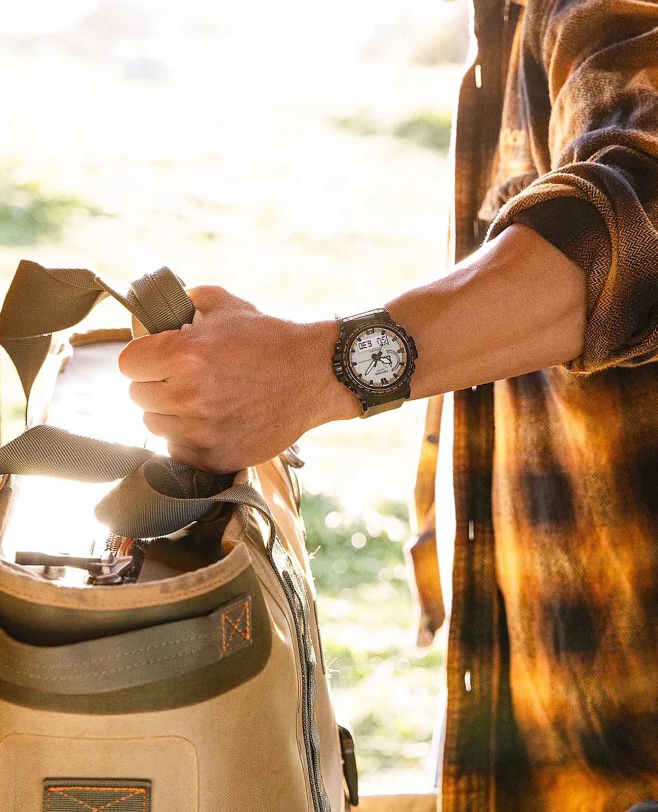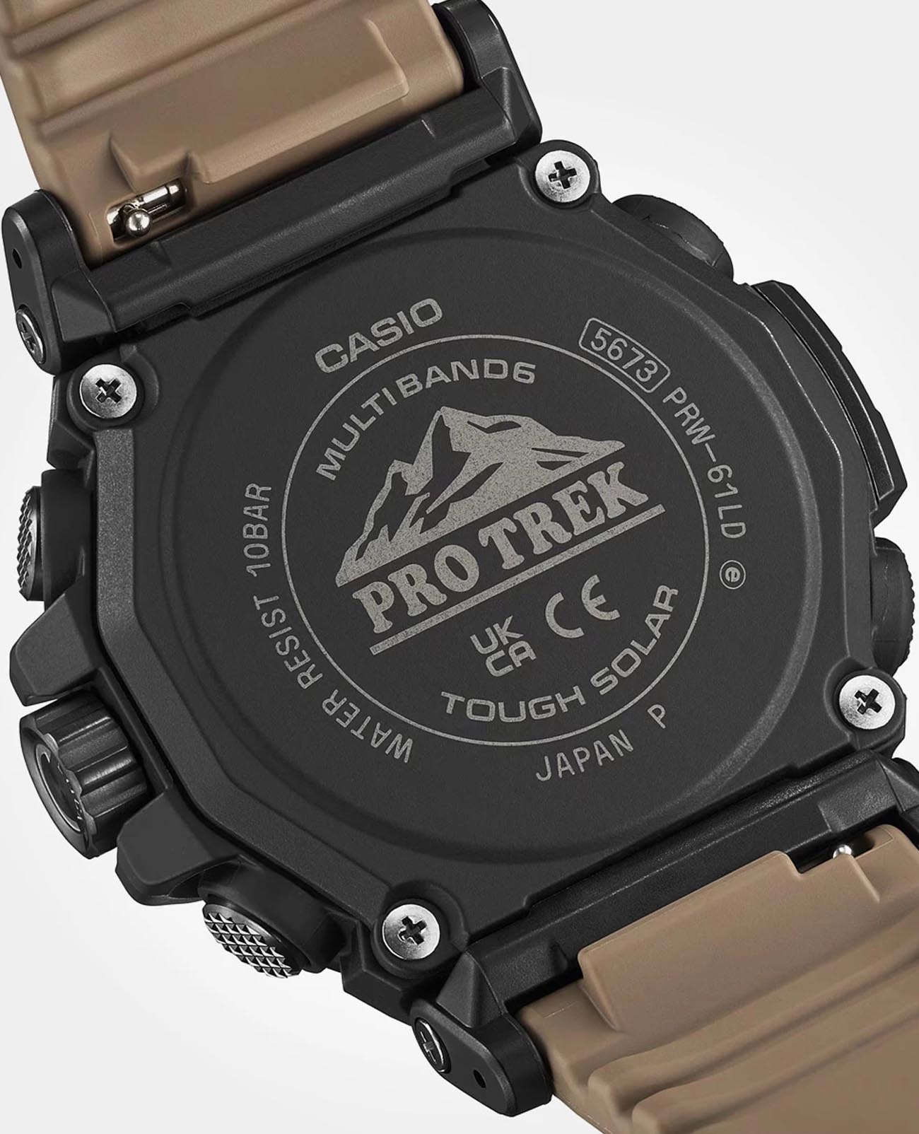 В целом же, дизайн корпуса PRW-61 остался узнаваем и даже с такой начинкой, в которой можно отметить водонепроницаемость корпуса, термометр, барометр, высотомер, цифровой компас, Tough SolarTough SolarТехнология основана на подзарядке аккумулятора от источника солнечного света, специальная панель улавливает солнечные лучи и преобразует их в энергию для работы часов. Достаточно пары минут нахождения на солнце для функционирования часов в течении суток. и радио-синхронизацию, часы отлично подходят в качестве ежедневного аксессуара для жителя современного города. Минеральное стеклоМинеральное стеклоМинеральное стекло представляет собой искусственно выращенный минерал кварца. Такое стекло отличается особой устойчивостью к повреждениям и царапинам. Уступает по некоторым качествам сапфировому стеклу. устойчивое к появлению царапин, обладающее высокой прозрачностью.