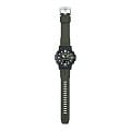 . Источником энергии для японского кварцевого механизма выступает солнечная батарея . Часы рассчитаны на работу при температуре ниже -10°C. Минеральное стекло. Водостойкость 100 метров. Заводная головка с системой блокировки. Ударопрочный корпусУдаропрочный корпусМеханизм заключён в корпус, выполненный из современных материалов, устойчивых к ударам, механическим повреждениям и падению с высоты: инновационный пластик, карбон, нержавеющая сталь, титан. из стали и пластика. Полимерный ремешок с карбоновой вставкой. Светодиодная подсветкаСветодиодная подсветкаСветодиодная или LED-подсветка обеспечивает появление яркого холодного свечения за счёт LED-элементов - маленьких лампочек. Они потребляют минимальное количество энергии, чаще всего можно встретить 1 светодиод, в нижней части циферблата.. Автоматическая настройка стрелок. Будильник, календарь. Габариты: 47,2 x 50,5 x 13,3 мм.
