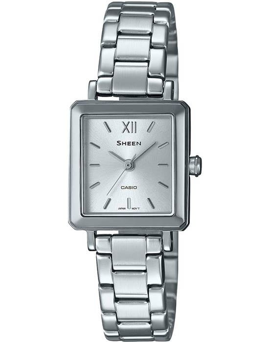 Японские женские часы Casio Sheen SHE-4538D-7AUDF, кварцевый механизм с высокой точностью. Класс водозащиты: 50 метров, позволит защитить корпус от случайных брызг или капель дождя. Корпус часов изготовлен из стали, серебристого цвета.