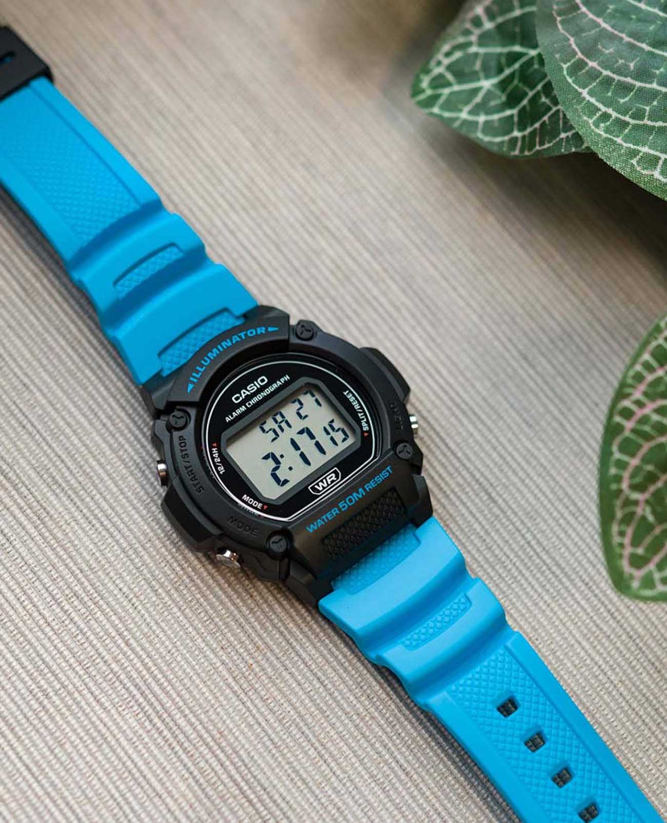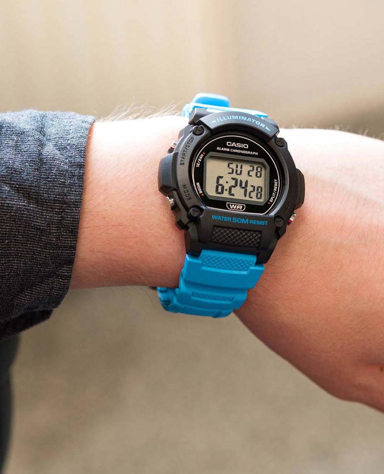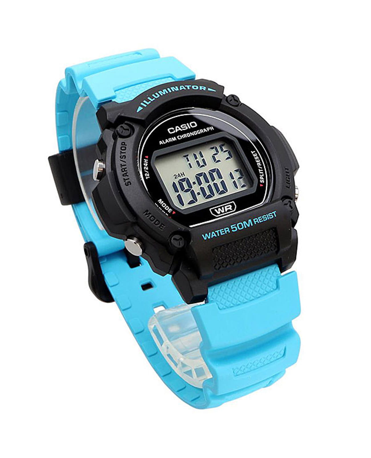 Спортивные японские мужские часы-хронографХронографФункция позволяет измерять отрезки времени с особой точностью: часы, минуты, секунды. Верным признаком хронографа является наличие на циферблате 3 дополнительных окошек-счётчиков. Casio Collection W-219H-2A2, кварцевый механизм с высокой точностью, органическое стекло. Корпус часов изготовлен из плачтика. Светодиодная подсветкаСветодиодная подсветкаСветодиодная или LED-подсветка обеспечивает появление яркого холодного свечения за счёт LED-элементов - маленьких лампочек. Они потребляют минимальное количество энергии, чаще всего можно встретить 1 светодиод, в нижней части циферблата. освещает весь циферблат. Цвет подсветки: оранжевый. 12-ти и 24-х часовой формат времени. СекундомерСекундомерСекундоме́р — прибор, способный измерять интервалы времени с точностью до долей секунды. с точностью показаний 1/100с и временем измерения 1ч. Сплит-хронографСплит-хронографИспользуется для измерения продолжительности нескольких временных отрезков, начинающихся одновременно, а заканчивающихся в разное время.. Батарейка рассчитана на 7 лет. Класс водозащиты: 50 метров, позволит защитить корпус от случайных брызг или капель дождя. Ремешок из полимерного материала на стандартной застежке.
