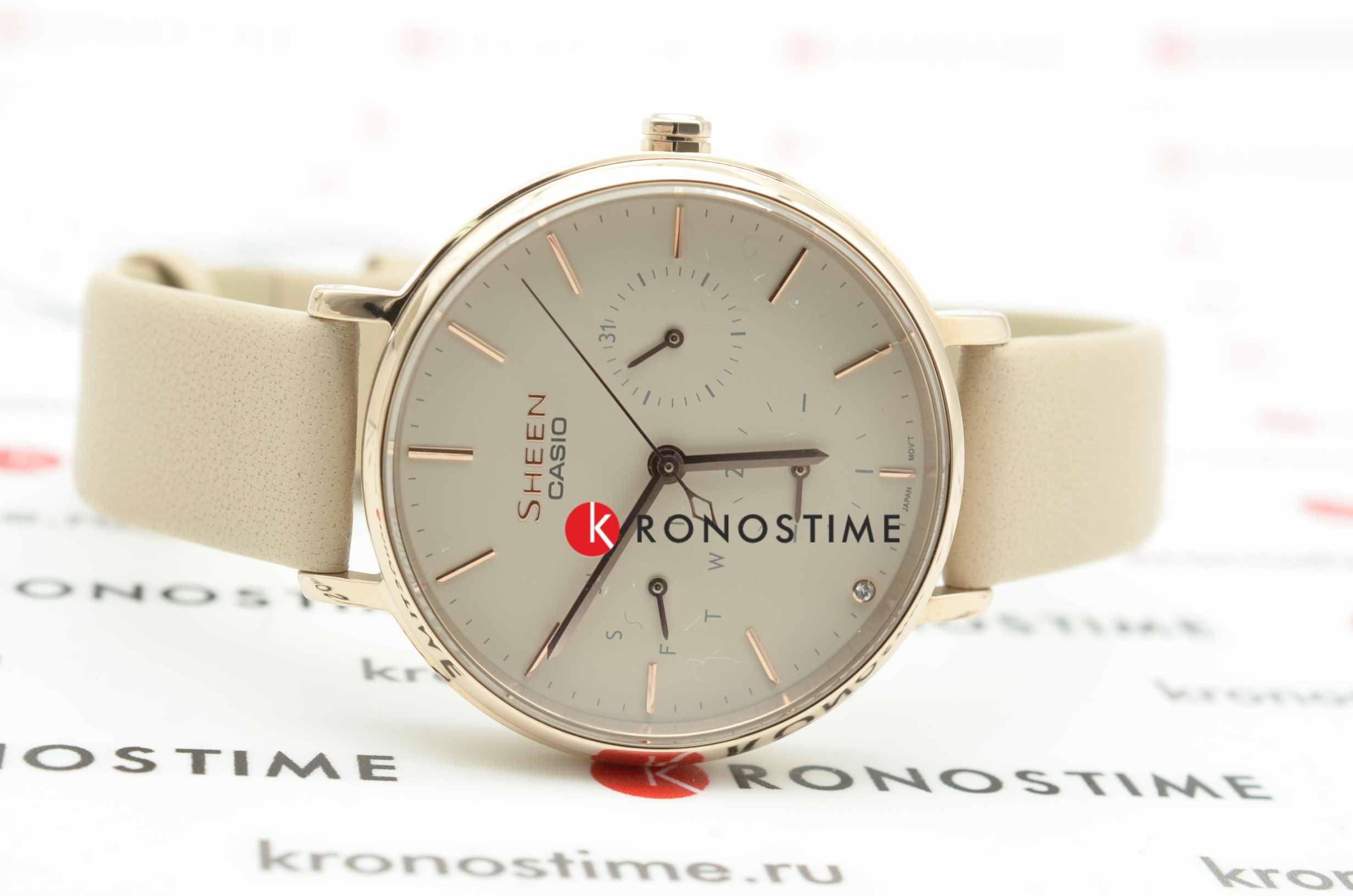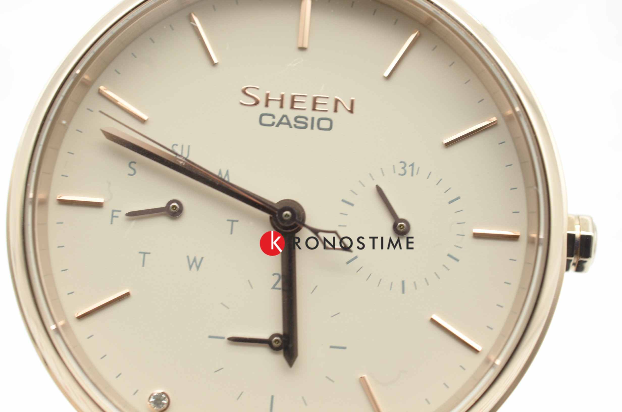 Плавные линии этих часов подчеркнут ваш очаровательный и женственный образ. Sheen. 12-ти и 24-х часовой формат времени, число и день недели отображаются на отдельных циферблатах. Метки в виде штрихов. Тройная раскладывающаяся застежка, расстегиваемая одним касанием.