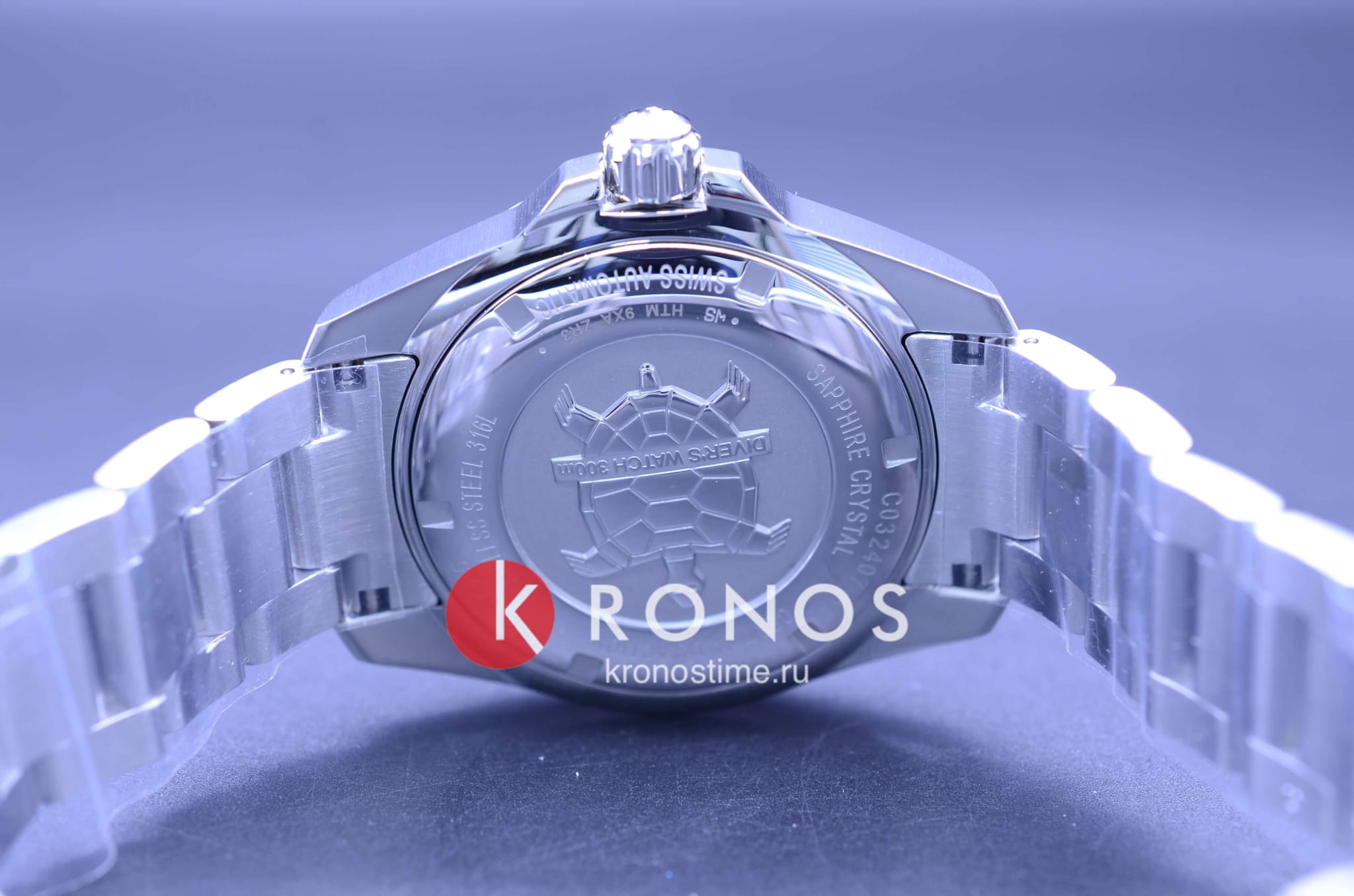 Стильный аксессуар воплощает собой дайверскую тематику, он способен сохранять водостойкость при давлении до 30 бар. Лаконично выглядит чёрный циферблат с красной секундной стрелкой в сочетании с серебристым блеском нержавеющей стали, из которой изготовлены ударопрочный корпусУдаропрочный корпусМеханизм заключён в корпус, выполненный из современных материалов, устойчивых к ударам, механическим повреждениям и падению с высоты: инновационный пластик, карбон, нержавеющая сталь, титан. и браслет. Наручные часы оснащены швейцарским механизмом ETA Powermatic 80Powermatic 80Эксклюзивный калибр от швейцарской компании ETA с увеличенным запасом хода до 80 часов за счёт удлинённой заводной пружины. Характеризуется улучшенной системой спуска со сниженным трением. с 80-часовым запасом хода. Завинчивающаяся заводная головка с системой защиты. Антибликовое покрытие сапфирового стекла. Люминесцентная подсветкаЛюминесцентное покрытиеПозволяет считывать показания времени в темноте. Производители наносят на стрелки, часовые индексы, безель или поверхность циферблата светонакопительный состав, дающий холодное свечение. стрелок и меток. Надёжная застежка с фиксатором и удлинением для дайверовУдлинение для дайверовЗастёжка с удлинением для дайверов представляет собой безопасное крепление, которое позволяет надевать часы поверх гидрокостюма. Гибкая застёжка удлиняется на 1-2 миллиметра.. Однонаправленно вращающийся алюминиевый безельБезельВнешний ободок, закрепляющий стекло. В спортивных часах так называется поворотное кольцо с делениями на циферблате, выполняет роль таймера – замеряет отрезки времени на шкале. Неподвижный безель – элемент декора. Однонаправленно вращающийся безель на дайверских часах позволяет фиксировать моменты погружения и выныривания на поверхность.. Диаметр корпуса: 43 мм.
