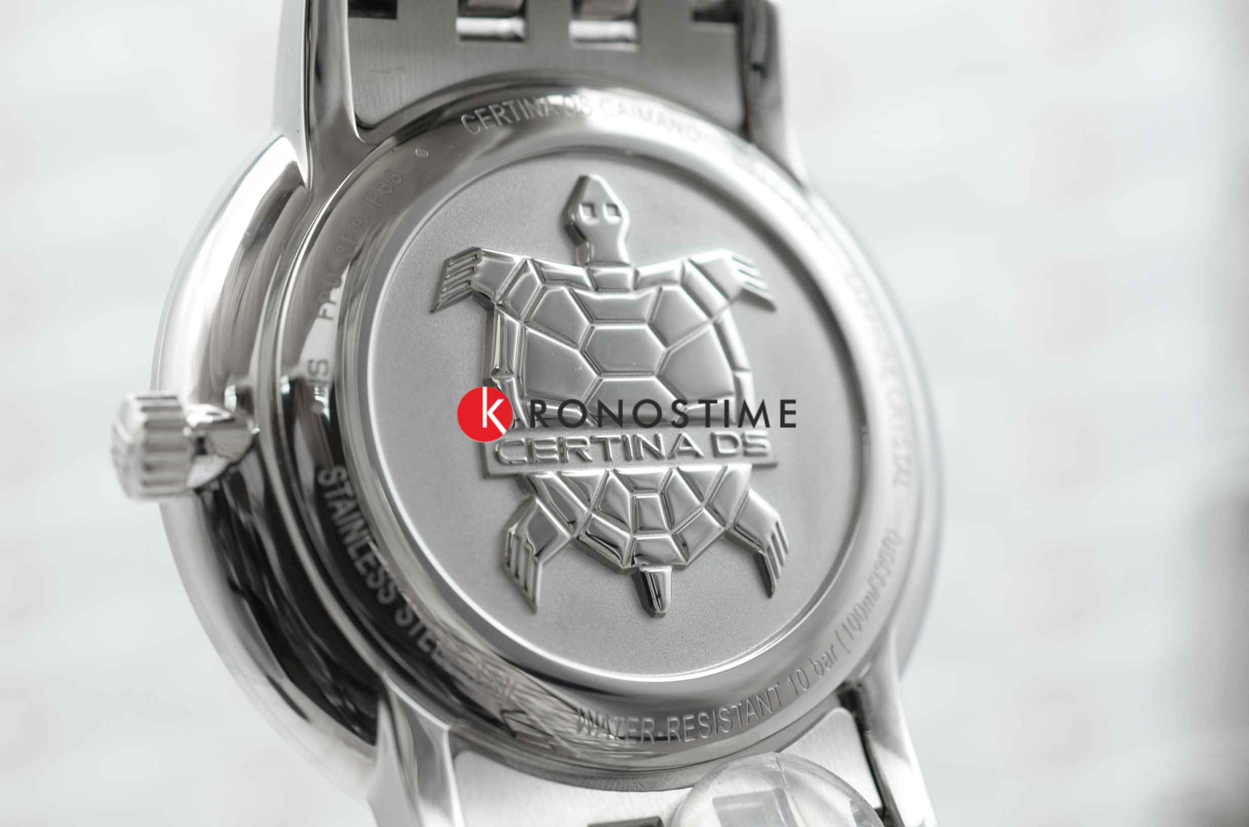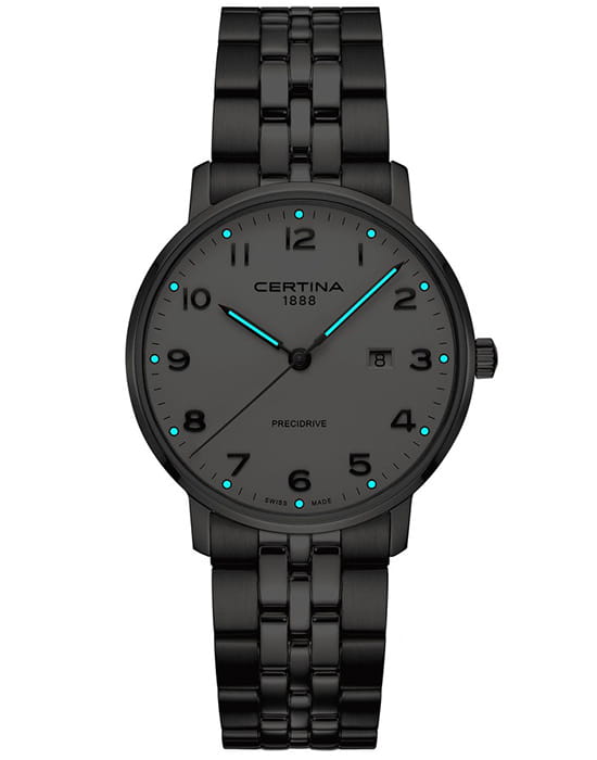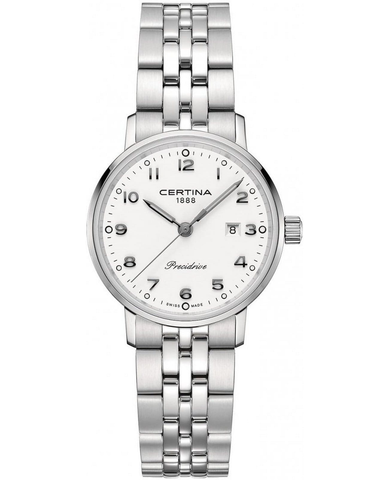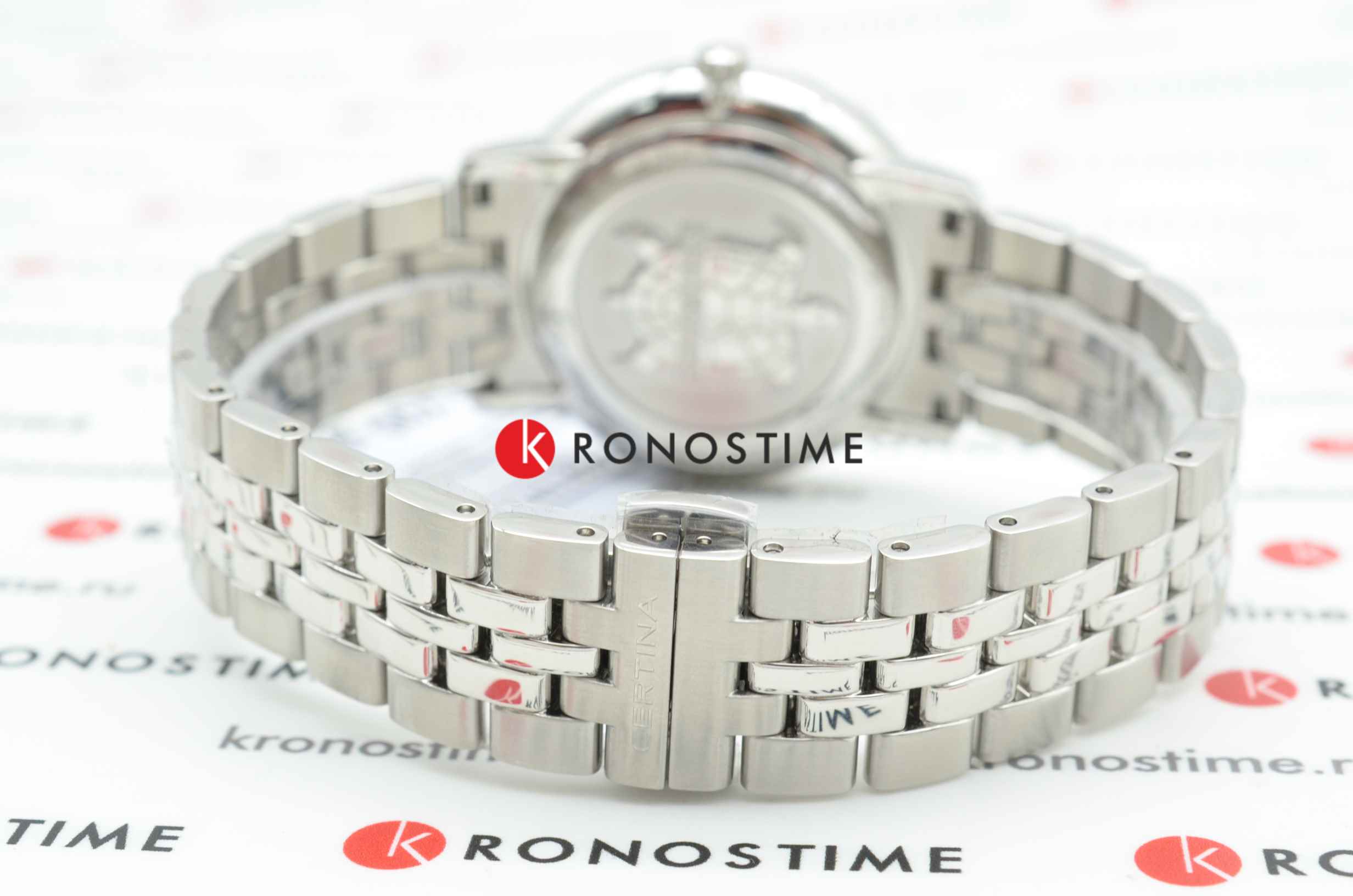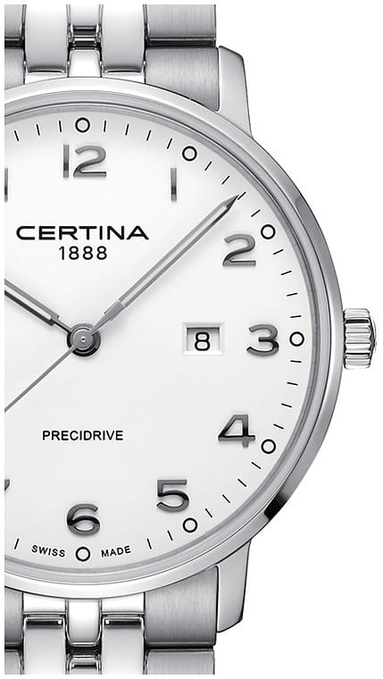 Часы выполнены в классическом дизайне, модель останется актуальной на долгие годы. Лаконичный светлый циферблат дополнен контрастными арабскими цифрами, что позволяет видеть время даже при мимолётном взгляде на запястье. Аксессуар оснащён швейцарским кварцевым калибром Precidrive™Precidrive™Инновационный кварцевый механизм Certina. Часы, оснащённые этим швейцарским калибром, приравниваются к точности к сертифицированным хронометрам, точность хода составляет +/-10 секунд в год., его точность приравнивается к сертифицированным хронометрам. Наручные часы основаны на концепции DS ConceptDS ConceptDouble Security Concept, обозначает двойную надёжность и безупречную точность часов Certina. Двойная система защиты подразумевает обеспечение максимальной устойчивости к ударам и высоких показателей водонепроницаемости., они отличаются ударопрочностью и водостойкостью до 10 бар. Сапфировое стекло имеет одностороннюю антибликовую обработку, уменьшающую отражение света в 10 раз. Стрелки дополнены люминесцентным покрытиемЛюминесцентное покрытиеПозволяет считывать показания времени в темноте. Производители наносят на стрелки, часовые индексы, безель или поверхность циферблата светонакопительный состав, дающий холодное свечение.. Для изготовления корпуса и браслета была выбрана нержавеющая сталь 316L. Функции: отображение даты, EOLEOLПредставляет собой систему, уведомляющую владельца часов о необходимости замены элемента питания. За 2 недели до полного разряда батарейки секундная стрелка перестаёт ходить чётко и начинает перепрыгивать на 3-4 деления.. Диаметр корпуса: 39 мм.