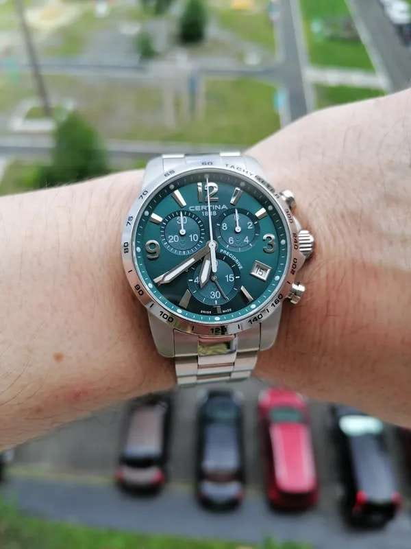 Certina DS не мои первые часы, но, безусловно, самые универсальные. Это идеальный вариант «одни на все случаи жизни»: они одинаково хорошо сочетаются и со светлой, и с темной одеждой, подходят как для шорт с майкой, так и для джинсов с рубашкой. Цвет циферблата отдельный восторг, модель очень стильная и привлекает комплименты. Единственный нюанс: секундная стрелка хронографа стоит с небольшим отклонением от метки «12», что, впрочем, типично для бюджетного швейцарского сегмента.