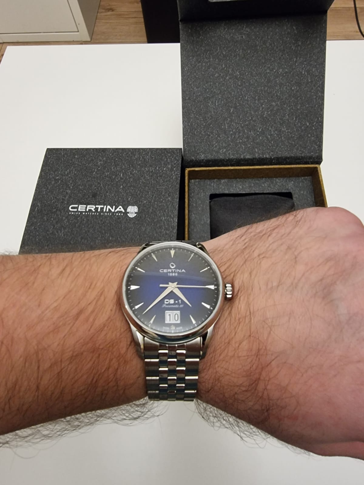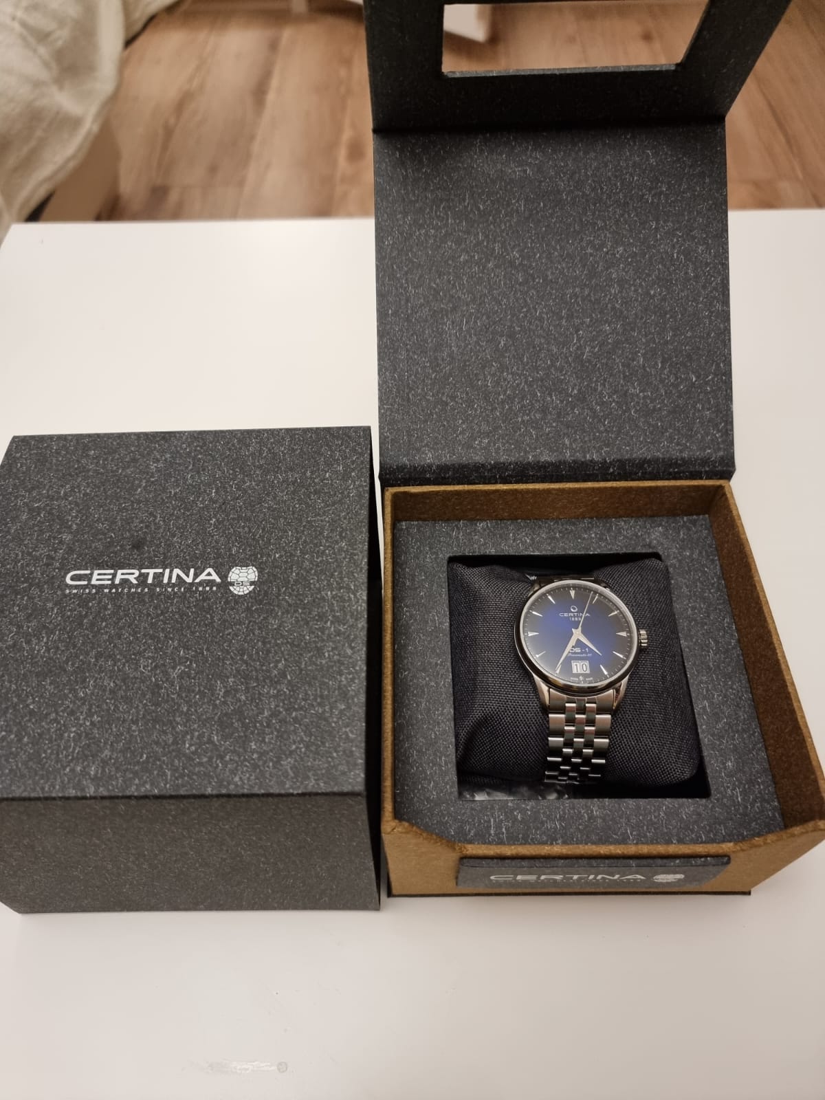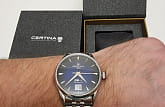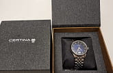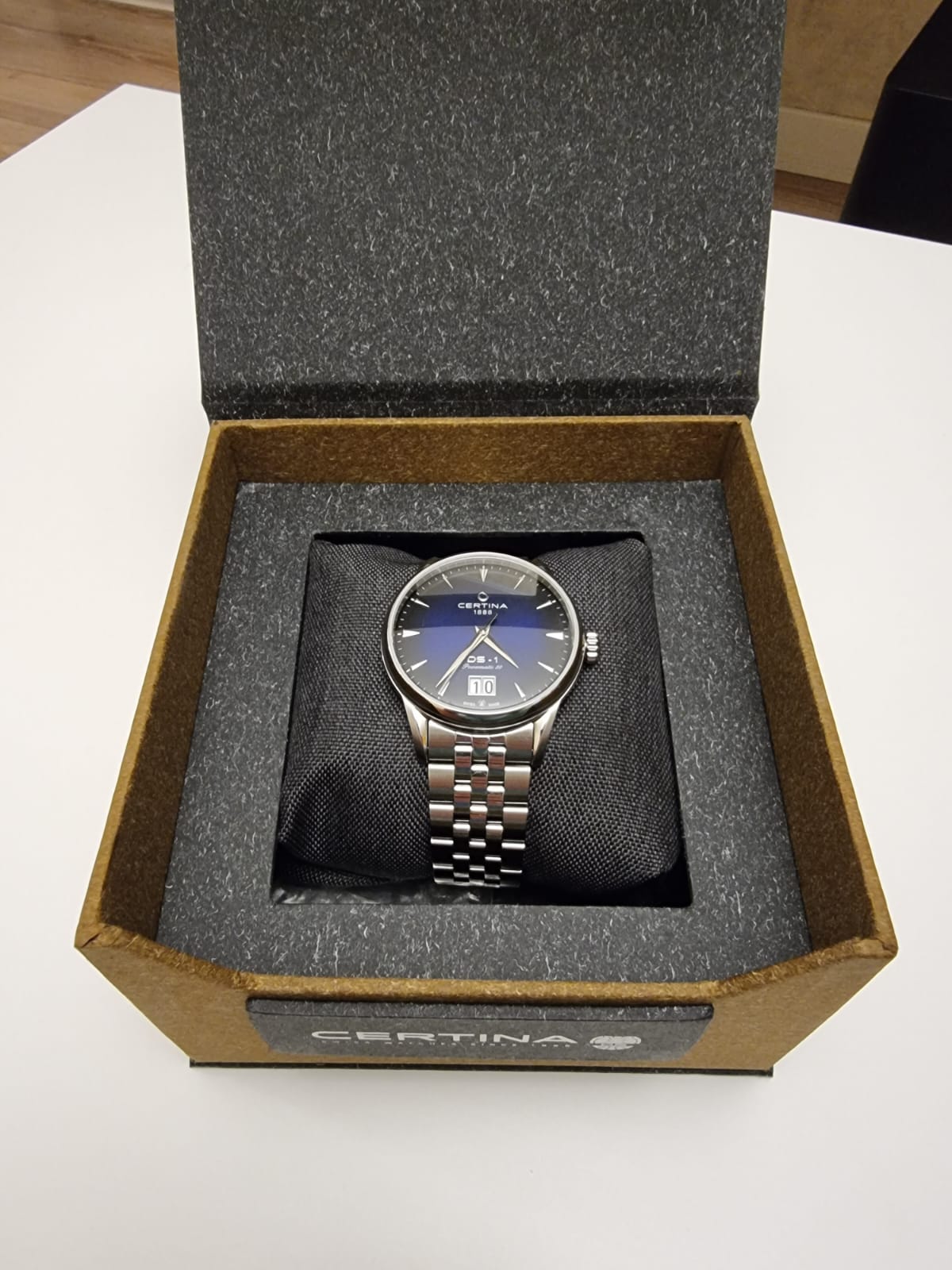 Аксессуар выполнен в классическом стиле, элегантно смотрится сатинированный синий циферблат. Надёжный стальной корпус дополнен уплотнительным кольцом в соответствии с концепцией Двойной Надёжности DSDS ConceptDouble Security Concept, обозначает двойную надёжность и безупречную точность часов Certina. Двойная система защиты подразумевает обеспечение максимальной устойчивости к ударам и высоких показателей водонепроницаемости.. Он защищает швейцарский автоматический механизм ETA Powermatic 80Powermatic 80Эксклюзивный калибр от швейцарской компании ETA с увеличенным запасом хода до 80 часов за счёт удлинённой заводной пружины. Характеризуется улучшенной системой спуска со сниженным трением. с увеличенным запасом хода до 80 часов. Калибр дополнен кремниевой спиралью Nivachron™, устраняющей действие магнитных полей. Выпуклое сапфировое стекло имеет покрытие антиблик. Часы водонепроницаемы до 100 метров. Браслет оснащён системой быстрой замены. В нижней части циферблата размещена крупная апертура даты. Диаметр корпуса: 41 мм.