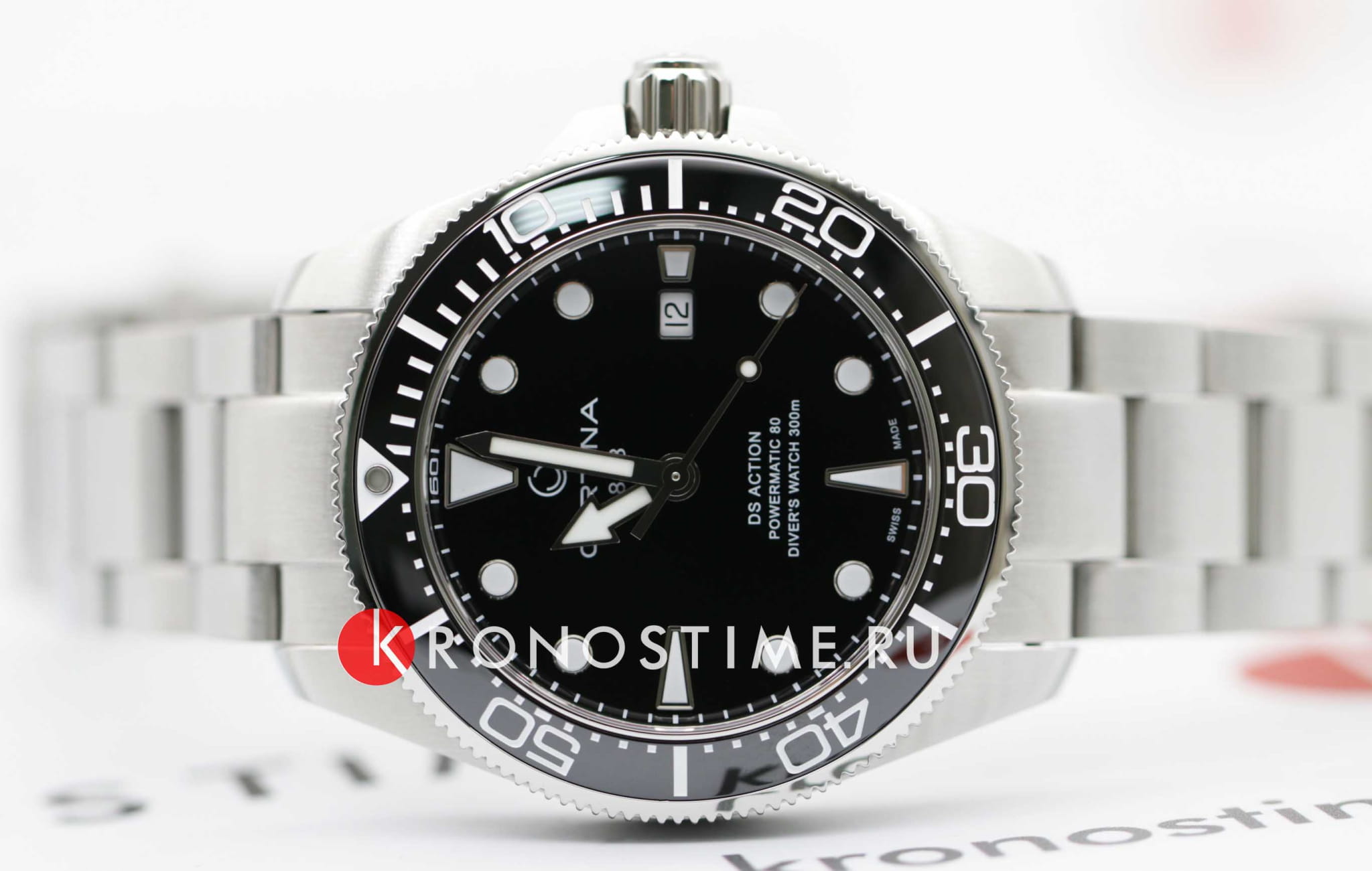 Приятно делать дорогую покупку у проверенного поставщика.Certina  часы, изготовленные с изысканной точностью. Все стрелки аккуратны и серебряные. Отличное сочетания с черным оттенком циферблата. Стекло сапфировое- верный гарант надежности. Также часы обладают высокой степенью влагоустойчивости.  Дополнительный акцент роскоши черепашка на тыльной стороне корпуса часов.