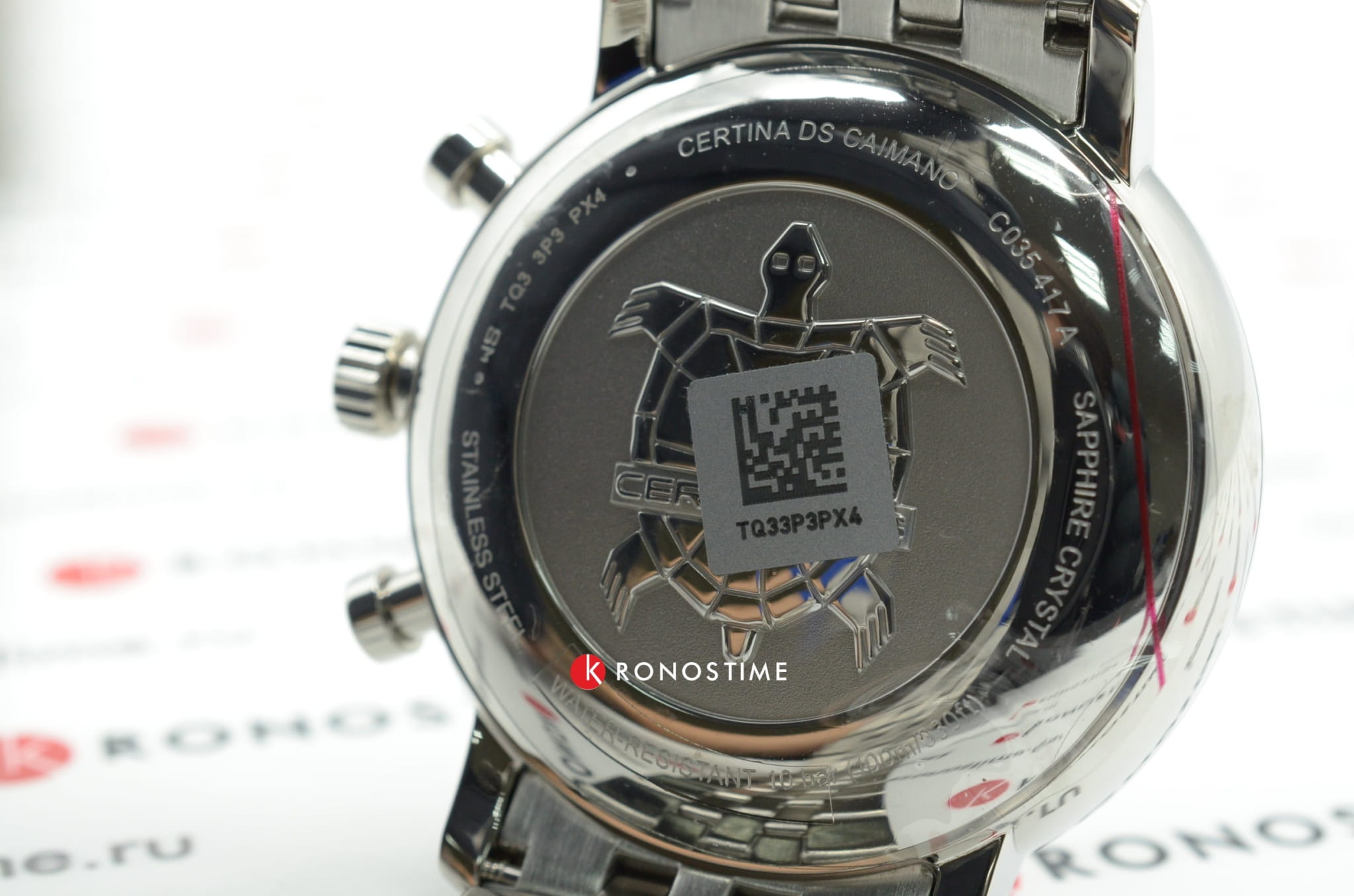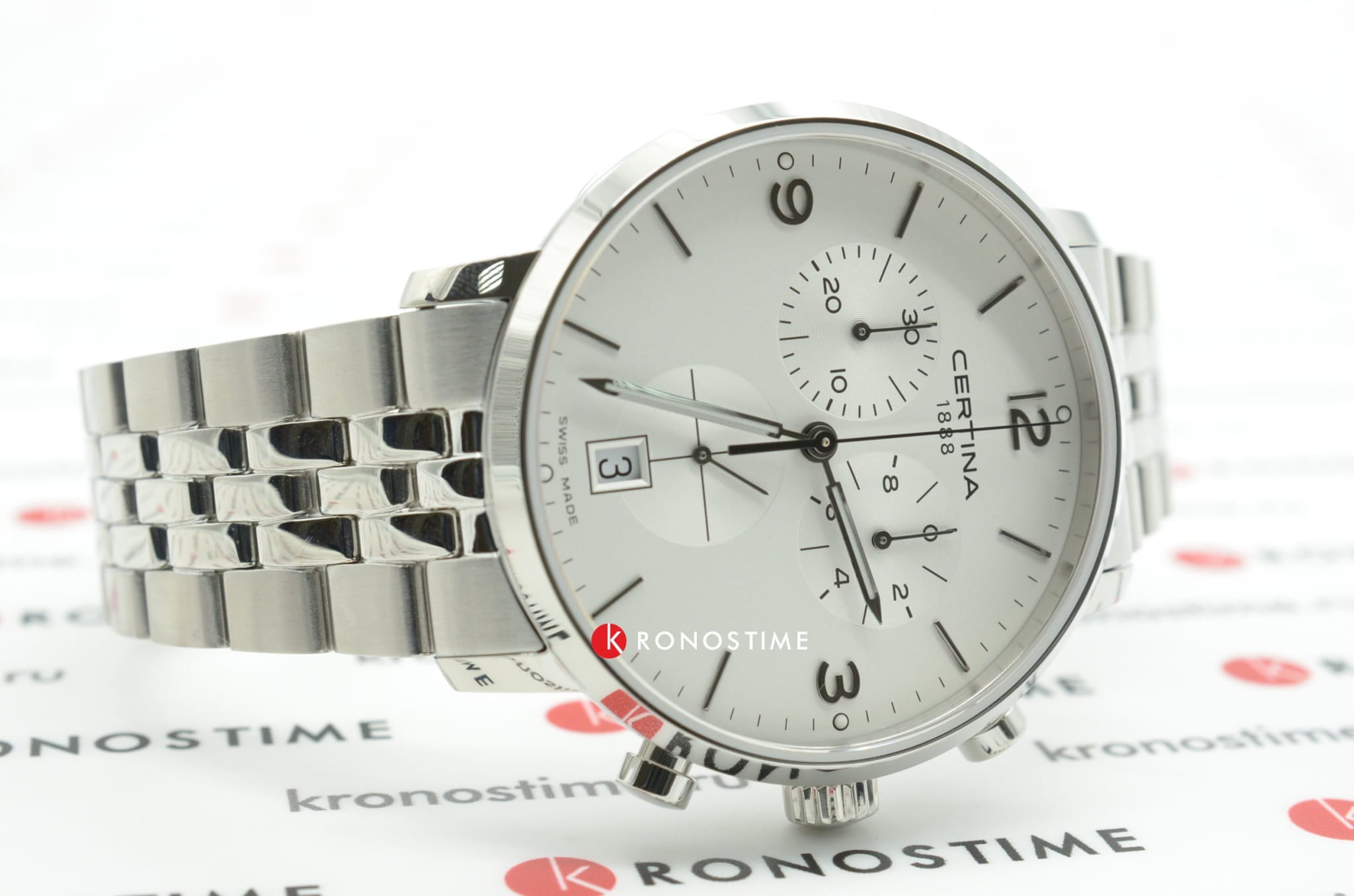 Брендовая модель поможет дополнить образ современного городского жителя. Классический стальной браслет с системой быстрой смены позволяет экспериментировать с образами. ХронографХронографФункция позволяет измерять отрезки времени с особой точностью: часы, минуты, секунды. Верным признаком хронографа является наличие на циферблате 3 дополнительных окошек-счётчиков. наделён светлым циферблатом, оттенок приятно гармонирует с серебристым блеском ударопрочного корпусаУдаропрочный корпусМеханизм заключён в корпус, выполненный из современных материалов, устойчивых к ударам, механическим повреждениям и падению с высоты: инновационный пластик, карбон, нержавеющая сталь, титан.. Швейцарский кварцевый механизм ETA G10.212. Концепция Двойной надёжности DS ConceptDS ConceptDouble Security Concept, обозначает двойную надёжность и безупречную точность часов Certina. Двойная система защиты подразумевает обеспечение максимальной устойчивости к ударам и высоких показателей водонепроницаемости.. Сапфировое стекло с обработкой «антиблик». Водостойкость при давлении до 10 бар. Хирургическая сталь 316L устойчива к царапинам и механическим воздействиям. Стрелки с люминесцентным покрытиемЛюминесцентное покрытиеПозволяет считывать показания времени в темноте. Производители наносят на стрелки, часовые индексы, безель или поверхность циферблата светонакопительный состав, дающий холодное свечение.. Секундомер, отображение текущей даты. Диаметр корпуса: 42 мм.
