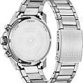 Citizen Chronograph AN3690-56X часы-хронографХронографФункция позволяет измерять отрезки времени с особой точностью: часы, минуты, секунды. Верным признаком хронографа является наличие на циферблате 3 дополнительных окошек-счётчиков. с секундомеромСекундомерСекундоме́р — прибор, способный измерять интервалы времени с точностью до долей секунды. спортивного дизайна с высоким уровнем водозащиты. Корпус из нержавеющей стали диаметром 44 мм идеально сбалансирован. Минеральное стеклоМинеральное стеклоМинеральное стекло представляет собой искусственно выращенный минерал кварца. Такое стекло отличается особой устойчивостью к повреждениям и царапинам. Уступает по некоторым качествам сапфировому стеклу. обеспечивает отличную защиту циферблата от царапин. Часы работают на основе кварцевого механизма. Стальной браслет на раскладной застёжкеРаскладная застёжкаТакой тип застёжки используется только на браслетах из металла. Она никогда не раскрывается полностью, происходит разделение на 2 и более частей. Раскладывающая застёжка снизит вероятность потери часов к минимуму. идеально дополняют дизайн часов, обеспечивая комфортное ношение. Секундомер с точностью 1с и временем измерения 12ч отображается центральной стрелкой. Циферблат с метками в виде штрихов выполнен по технологии Sunray (солнечные лучи). Окошко даты находится в положении 3 часа. Заводная головка с защитой. Часы обладают впечатляющей водонепроницаемостью до 100WR, что делает их идеальными для повседневной носки.