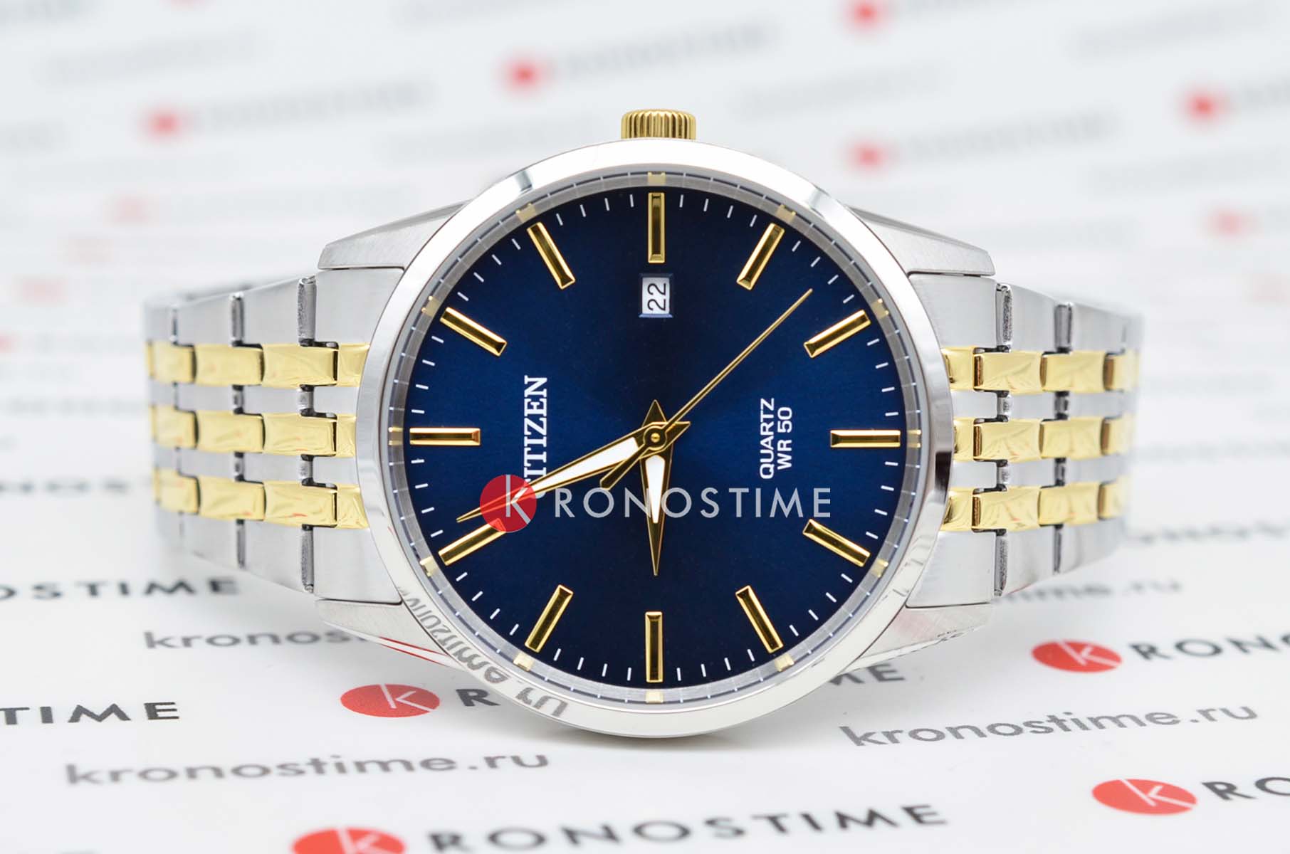 Часы Citizen BI5006-81L сочетают в себе японское качество, современный дизайн и надежность кварцевого механизма Citizen G111. Круглый корпус диаметром 39 мм выполнен из прочной нержавеющей стали, что обеспечивает долговечность и стильный внешний вид. Синий циферблат украшен метками в виде штрихов, а также дополнен окошком календаря с отображением даты и дня недели в позиции «3 часа». Стрелки с люминесцентным покрытиемЛюминесцентное покрытиеПозволяет считывать показания времени в темноте. Производители наносят на стрелки, часовые индексы, безель или поверхность циферблата светонакопительный состав, дающий холодное свечение., что обеспечивает отличную видимость в темноте. Минеральное стеклоМинеральное стеклоМинеральное стекло представляет собой искусственно выращенный минерал кварца. Такое стекло отличается особой устойчивостью к повреждениям и царапинам. Уступает по некоторым качествам сапфировому стеклу. защищает циферблат от царапин и повреждений. Рифленая заводная головка подчеркивает элегантность и практичность модели. Стальной браслет с частичным золотистым IP-покрытиемIP-покрытиеМетод ионного напыления. Демонстрирует повышенную устойчивость к истиранию, окислению и химическим веществам. Под воздействием высокого давления и температуры около 1500°C молекулы металла надёжно соединяются с частицами корпуса часов. оснащен надежной раскладной застёжкойРаскладная застёжкаТакой тип застёжки используется только на браслетах из металла. Она никогда не раскрывается полностью, происходит разделение на 2 и более частей. Раскладывающая застёжка снизит вероятность потери часов к минимуму., что обеспечивает комфортное ношение и подходит для любого случая. Водозащита до 50 метров позволяет не бояться случайных брызг и дождя.