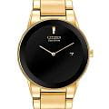 Часы Citizen GA1052-55E произведены в Японии и воплощают стильный минимализм, который гармонично дополнит любой образ. Корпус диаметром 29,5 мм и браслет шириной 16 мм выполнены из прочной нержавеющей стали с износостойким золотистым PVD-покрытиемPVDУльтратонкое покрытие наносится в технике вакуумного напыления, сочетает в себе нитрид титана особой прочности со слоем золота или оксида хрома. Несёт в себе декоративную или защитную функцию., что придает модели современный и лаконичный вид. Черный циферблат с лаконичной разметкой оснащён окошком календаря с указанием числа в положении 3 часа, а минеральное стеклоМинеральное стеклоМинеральное стекло представляет собой искусственно выращенный минерал кварца. Такое стекло отличается особой устойчивостью к повреждениям и царапинам. Уступает по некоторым качествам сапфировому стеклу. надежно защищает его от царапин. Кварцевый механизм Citizen J015 работает на инновационной системе Eco-Drive, благодаря которой часы не требуют замены батарейки и заряжаются от любого источника света, обеспечивая запас хода до 180 дней. Дополнительные функции включают индикацию низкого заряда EOLEOLПредставляет собой систему, уведомляющую владельца часов о необходимости замены элемента питания. За 2 недели до полного разряда батарейки секундная стрелка перестаёт ходить чётко и начинает перепрыгивать на 3-4 деления. и предотвращение перезарядки. Водозащита уровня WR30 позволяет не бояться случайных брызг, а удобная раскладная застёжкаРаскладная застёжкаТакой тип застёжки используется только на браслетах из металла. Она никогда не раскрывается полностью, происходит разделение на 2 и более частей. Раскладывающая застёжка снизит вероятность потери часов к минимуму. гарантирует комфортное ношение. Вес часов составляет 78 грамм. Эта модель станет идеальным выбором для ценителей лаконичного дизайна и современных технологий.