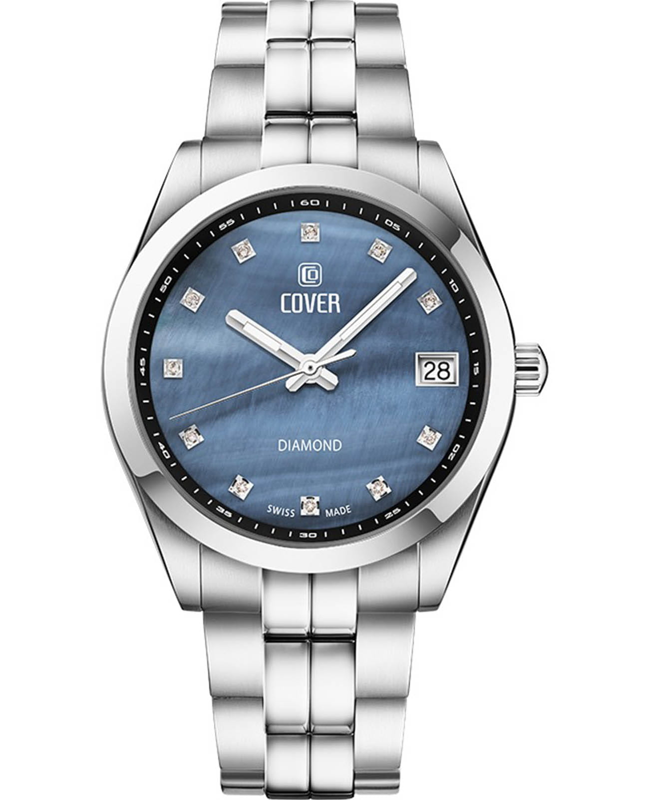 Женские швейцарские часы Cover CO210.01 из коллекции Andara Diamond — воплощение элегантности и роскоши. Эта уникальная модель украшена синтетическими бриллиантами, которые гармонично сочетаются с синим перламутровым циферблатом, создавая ослепительную игру света на запястье. Стальной корпус диаметром 35 мм выполнен в пропорциональных размерах, что делает часы удобными для повседневного ношения. Циферблат защищен прочным сапфировым стекломСапфировое стеклоПрочный и надёжный материал из кристалла сапфира синтетического происхождения, характеризующийся особой твёрдостью и устойчивостью к царапинам и повреждениям., устойчивым к царапинам и обеспечивающим идеальную читаемость времени даже при ярком свете. На часовую, минутную стрелки нанесено люминесцентное покрытиеЛюминесцентное покрытиеПозволяет считывать показания времени в темноте. Производители наносят на стрелки, часовые индексы, безель или поверхность циферблата светонакопительный состав, дающий холодное свечение., которое светится в темноте, создавая необычное изображение. Модель оснащена водонепроницаемостью до 10 АТМ, что позволяет использовать часы во время плавания или занятий водными видами спорта. Однако важно помнить, что во время погружения рекомендуется не нажимать кнопки и не пользоваться заводной головкой. Стальной браслет на застёжке-бабочке с кнопкамиЗастёжка "бабочка"Такой вид застёжки дополняется предохранителями, помогающими избежать случайного раскрытия браслета. Обладают изящным исполнением. . На часы распространяется официальная международная гарантия сроком на 24 месяца, подтверждающая их надежность и качество. Бренд COVER гордится своей приверженностью швейцарским часовым традициям. Cover CO210.01 — это не просто аксессуар, а символ статуса и безупречного вкуса, который станет идеальным дополнением вашего образа. Эти часы способны преобразить любой наряд, будь то деловой костюм или вечернее платье.