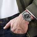 Мужские наручные часы-хронографХронографФункция позволяет измерять отрезки времени с особой точностью: часы, минуты, секунды. Верным признаком хронографа является наличие на циферблате 3 дополнительных окошек-счётчиков. Cover CO212.01 из коллекции Iconosteel сочетают в себе классический дизайн и надежность современных технологий. Часы оснащены кварцевым механизмом с модулем хронографа Ronda 5040.D, они обеспечивают точность и надежность в каждом моменте. Модель обладает круглым корпусом диаметром 41 мм, изготовленным из нержавеющей стали, что обеспечивает высокую устойчивость к внешним воздействиям. Браслет выполнен из нержавеющей стали с раскладной застёжкойРаскладная застёжкаТакой тип застёжки используется только на браслетах из металла. Она никогда не раскрывается полностью, происходит разделение на 2 и более частей. Раскладывающая застёжка снизит вероятность потери часов к минимуму., гарантирующей комфортное ношение и безопасность. Черный циферблат оснащен окном даты на «4 часах» и стрелками с люминесцентным покрытиемЛюминесцентное покрытиеПозволяет считывать показания времени в темноте. Производители наносят на стрелки, часовые индексы, безель или поверхность циферблата светонакопительный состав, дающий холодное свечение.. Для защиты используется сапфировое стеклоСапфировое стеклоПрочный и надёжный материал из кристалла сапфира синтетического происхождения, характеризующийся особой твёрдостью и устойчивостью к царапинам и повреждениям., обеспечивающее прочную защиту от царапин и антибликовый эффект. На черный безельБезельВнешний ободок, закрепляющий стекло. В спортивных часах так называется поворотное кольцо с делениями на циферблате, выполняет роль таймера – замеряет отрезки времени на шкале. Неподвижный безель – элемент декора. Однонаправленно вращающийся безель на дайверских часах позволяет фиксировать моменты погружения и выныривания на поверхность. с PVD-покрытиемPVDУльтратонкое покрытие наносится в технике вакуумного напыления, сочетает в себе нитрид титана особой прочности со слоем золота или оксида хрома. Несёт в себе декоративную или защитную функцию. нанесена шкала тахиметраТахиметрРазмеченная шкала, располагается на ободке или безеле часов. Тахиметр позволяет рассчитать скорость на определённом участке пути, расстояние измеряется в километрах или милях.. Модель также является хронографом, оснащенным функцией секундомераСекундомерСекундоме́р — прибор, способный измерять интервалы времени с точностью до долей секунды., делая ее идеальной для активного образа жизни. Водонепроницаемость часов достигает 10 атмосфер (100 метров), что позволяет использовать их во время плавания и других водных видов спорта, однако не рекомендуется для глубоководного дайвинга.