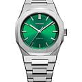 Часы D1 Milano Automatico Green Code ATBU05 – стильный аксессуар для современных женщин. Часы механические с автоподзаводом. Корпус выполнен из прочной нержавеющей стали 316L, а изысканный зеленый циферблат украшен простыми штрихами вместо цифр. Минималистичный дизайн циферблата, защищенный прочным сапфировым стекломСапфировое стеклоПрочный и надёжный материал из кристалла сапфира синтетического происхождения, характеризующийся особой твёрдостью и устойчивостью к царапинам и повреждениям. с антибликовым покрытиемАнтибликовое покрытиеСлой оксида металла в 0,13-0,3 микрон, благодаря которому стекло часов не бликует и не отражает свет. Антибликовое покрытие уменьшает отражение света в 10 раз, обеспечивая отличную читаемость показателей циферблата., привлекает внимание своей сдержанной красотой. Лаконичные стрелки с люминесцентным покрытиемЛюминесцентное покрытиеПозволяет считывать показания времени в темноте. Производители наносят на стрелки, часовые индексы, безель или поверхность циферблата светонакопительный состав, дающий холодное свечение.. Задняя крышка закреплена на 8 винтах, что обеспечивает надежность конструкции. Стальной браслет с удобной застёжкой «бабочка»Застёжка "бабочка"Такой вид застёжки дополняется предохранителями, помогающими избежать случайного раскрытия браслета. Обладают изящным исполнением. обеспечивают комфорт при ношении. Часы имеют водозащиту 100 метров (100WR), что позволит плавать, нырять и заниматься другими водными видами спорта. Это не просто часы, а статусный аксессуар, подчеркивающий безупречный вкус и внимание к деталям своего владельца.