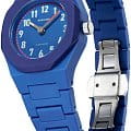 Часы D1 Milano Nanochrome Young Dolphin Blue NCBJ01 – это стильные и молодежные наручные часы, идеально подходящие для подростков. Модель имеет компактный корпус диаметром 32 мм и толщиной 8,8 мм, изготовленный из поликарбоната с мягким на ощупь покрытием. Часы оснащены матовым синим циферблатом с белыми и оранжевыми деталями, что придает им яркий и современный вид. Минеральное стекло с антибликовым покрытием защищает циферблат от царапин. Часы работают от кварцевого механизма Seiko VJ20, обеспечивающего точный ход. Синий поликарбонатный ремешок с потайной раскладной застёжкойРаскладная застёжкаТакой тип застёжки используется только на браслетах из металла. Она никогда не раскрывается полностью, происходит разделение на 2 и более частей. Раскладывающая застёжка снизит вероятность потери часов к минимуму. удобно облегает запястье. Водонепроницаемость 5 ATM позволяет носить часы при плавании. Легкий вес всего 34 грамма делает их комфортными для повседневного использования. Часы D1 Milano Nanochrome NCBJ01 сочетают в себе итальянский дизайн, качество и доступность, что делает их отличным выбором для молодых людей, желающих выразить свой стиль.