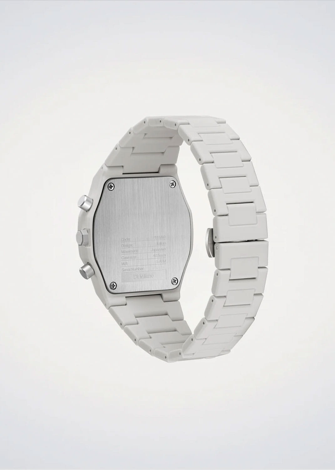 Мужские кварцевые часы-хронографХронографФункция позволяет измерять отрезки времени с особой точностью: часы, минуты, секунды. Верным признаком хронографа является наличие на циферблате 3 дополнительных окошек-счётчиков. D1 Milano Polychrono PHBJ11 — это стильное сочетание элегантности и современного дизайна. Изящный корпус выполнен из пластика, диаметром 40,5 мм, что придаст образу элегантности и надежности. Изысканный циферблат с метками в виде штрихов придает модели особый блеск. Циферблат защищен минеральным стекломМинеральное стеклоМинеральное стекло представляет собой искусственно выращенный минерал кварца. Такое стекло отличается особой устойчивостью к повреждениям и царапинам. Уступает по некоторым качествам сапфировому стеклу. с антибликовым покрытиемАнтибликовое покрытиеСлой оксида металла в 0,13-0,3 микрон, благодаря которому стекло часов не бликует и не отражает свет. Антибликовое покрытие уменьшает отражение света в 10 раз, обеспечивая отличную читаемость показателей циферблата., обеспечивающий устойчивость к царапинам. Часы оснащены надежным кварцевым механизмом. Окошко даты находится в положении между 4 и 5 часов. Пластиковый браслет на застёжке-бабочке с кнопкамиЗастёжка "бабочка"Такой вид застёжки дополняется предохранителями, помогающими избежать случайного раскрытия браслета. Обладают изящным исполнением. , гарантирует комфортное и безопасное ношение. Класс водозащиты: 50 метров позволит защитить корпус от случайных брызг или капель дождя. Индивидуальный серийный номер. Отличный выбор для тех, кто ценит утонченность и качество.
