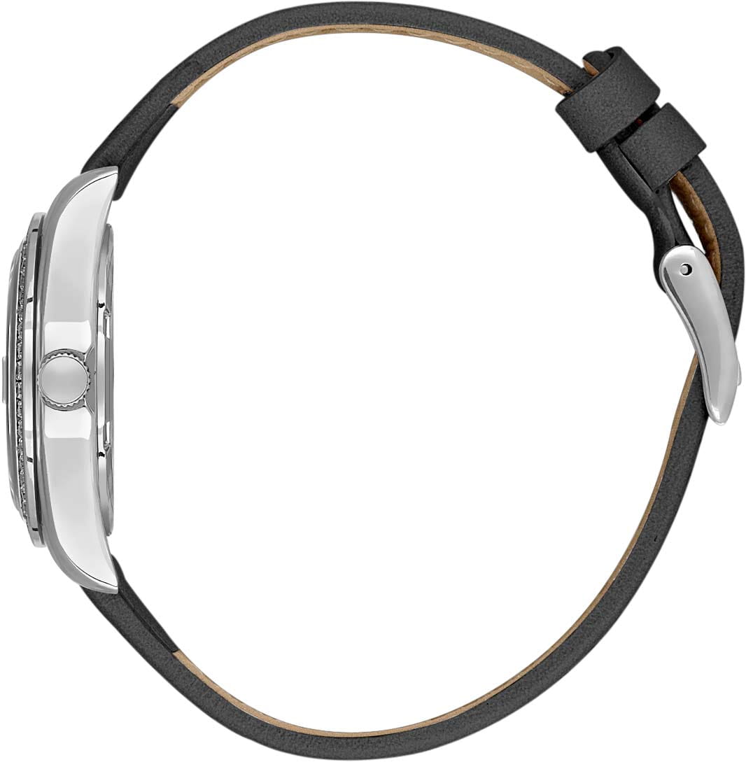 Женские кварцевые часы Daniel Klein — это изысканный аксессуар, который станет украшением вашего запястья. Корпус диаметром 30 мм выполнен из нержавеющей стали. БезельБезельВнешний ободок, закрепляющий стекло. В спортивных часах так называется поворотное кольцо с делениями на циферблате, выполняет роль таймера – замеряет отрезки времени на шкале. Неподвижный безель – элемент декора. Однонаправленно вращающийся безель на дайверских часах позволяет фиксировать моменты погружения и выныривания на поверхность. инкрустирован кристаллами. Циферблат серебристого цвета выполнен по технологии Sunray («солнечные лучи») и оформлен штрихами, точками с кристаллами и стрелками. Окошко даты расположено в положении 3 часов и оснащено увеличительным стеклом (Cyclops). Стрелки и метки с люминесцентным покрытиемЛюминесцентное покрытиеПозволяет считывать показания времени в темноте. Производители наносят на стрелки, часовые индексы, безель или поверхность циферблата светонакопительный состав, дающий холодное свечение., обеспечивающим хорошую читаемость в темноте. Циферблат защищён минеральным стекломМинеральное стеклоМинеральное стекло представляет собой искусственно выращенный минерал кварца. Такое стекло отличается особой устойчивостью к повреждениям и царапинам. Уступает по некоторым качествам сапфировому стеклу.. Часы оснащены кожаным ремешком на классической пряжке. Водонепроницаемость 30 м позволяет использовать часы в повседневных условиях. Идеальный выбор для тех, кто ценит турецкое качество и элегантный дизайн.