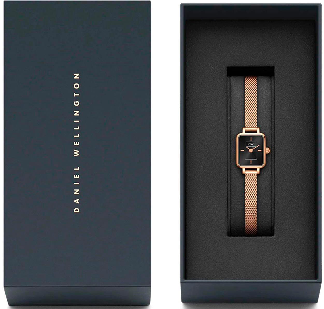 Женские наручные часы с минеральным стекломМинеральное стеклоМинеральное стекло представляет собой искусственно выращенный минерал кварца. Такое стекло отличается особой устойчивостью к повреждениям и царапинам. Уступает по некоторым качествам сапфировому стеклу. Daniel Wellington Quadro Mini Melrose Onyx DW00100647, кварцевый механизм с высокой точностью. Класс водозащиты: 30 метров, позволит защитить корпус от случайных брызг или капель дождя. Корпус часов изготовлен из стали с PVD-покрытиемPVDУльтратонкое покрытие наносится в технике вакуумного напыления, сочетает в себе нитрид титана особой прочности со слоем золота или оксида хрома. Несёт в себе декоративную или защитную функцию.. Стальной браслет на раскладной застёжкеРаскладная застёжкаТакой тип застёжки используется только на браслетах из металла. Она никогда не раскрывается полностью, происходит разделение на 2 и более частей. Раскладывающая застёжка снизит вероятность потери часов к минимуму. с PVD-покрытиемPVDУльтратонкое покрытие наносится в технике вакуумного напыления, сочетает в себе нитрид титана особой прочности со слоем золота или оксида хрома. Несёт в себе декоративную или защитную функцию.. Двухуровневый циферблат выполнен по технологии Sunray (солнечные лучи) и украшен фирменным логотипом Daniel Wellington. Накладные метки в виде штрихов. Рифленая заводная головка. Индивидуальный серийный номер.
