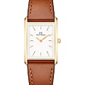 Женские наручные часы с минеральным стекломМинеральное стеклоМинеральное стекло представляет собой искусственно выращенный минерал кварца. Такое стекло отличается особой устойчивостью к повреждениям и царапинам. Уступает по некоторым качествам сапфировому стеклу. Daniel Wellington Bound Durham Gold DW00100696, кварцевый механизм с высокой точностью. Корпус часов изготовлен из нержавеющей стали с PVD-покрытиемPVDУльтратонкое покрытие наносится в технике вакуумного напыления, сочетает в себе нитрид титана особой прочности со слоем золота или оксида хрома. Несёт в себе декоративную или защитную функцию.. Накладные метки в виде штрихов. Японский кварцевый механизм. Рифленая заводная головка. Класс водозащиты: 30 метров, позволит защитить корпус от случайных брызг или капель дождя. Кожаный ремешок на стандартной застежке.