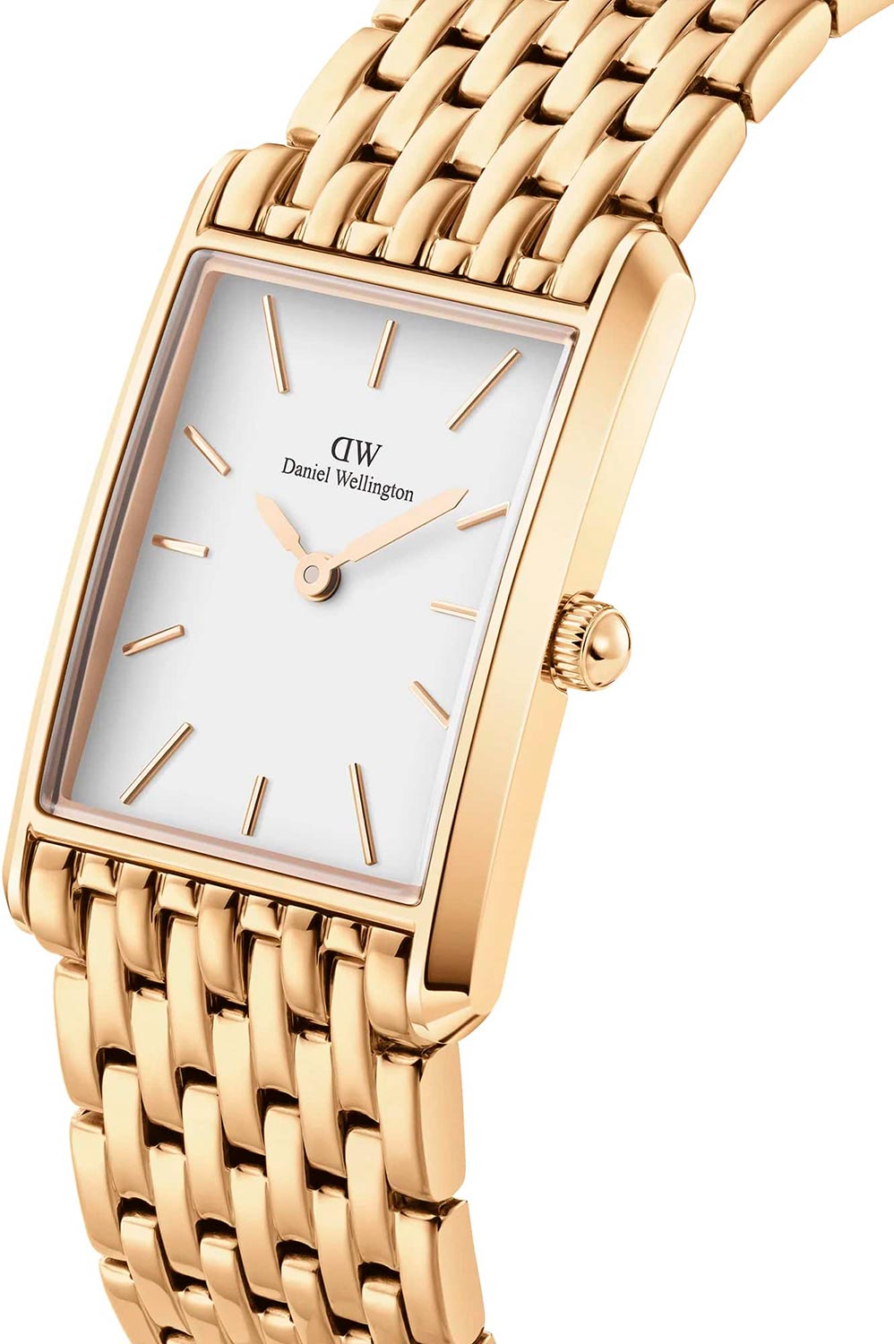 Женские наручные часы с минеральным стекломМинеральное стеклоМинеральное стекло представляет собой искусственно выращенный минерал кварца. Такое стекло отличается особой устойчивостью к повреждениям и царапинам. Уступает по некоторым качествам сапфировому стеклу. Daniel Wellington Bound 9-Link Gold DW00100705, кварцевый механизм с высокой точностью. Корпус часов изготовлен из нержавеющей стали с PVD-покрытиемPVDУльтратонкое покрытие наносится в технике вакуумного напыления, сочетает в себе нитрид титана особой прочности со слоем золота или оксида хрома. Несёт в себе декоративную или защитную функцию.. Накладные метки в виде штрихов. Японский кварцевый механизм. Рифленая заводная головка. Класс водозащиты: 30 метров, позволит защитить корпус от случайных брызг или капель дождя. Стальной браслет на раскладной застёжкеРаскладная застёжкаТакой тип застёжки используется только на браслетах из металла. Она никогда не раскрывается полностью, происходит разделение на 2 и более частей. Раскладывающая застёжка снизит вероятность потери часов к минимуму. с PVD-покрытиемPVDУльтратонкое покрытие наносится в технике вакуумного напыления, сочетает в себе нитрид титана особой прочности со слоем золота или оксида хрома. Несёт в себе декоративную или защитную функцию..