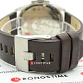 Стильные часы с узорчатым циферблатом отличаются футуристическим исполнением, броский аксессуар со стилизованной апертурой даты подойдёт для молодых людей, которые не боятся становиться центром внимания. Кварцевый механизм отвечает за абсолютную точность хода. Надёжный корпус сделан из долговечной хирургической стали 316L. Люминесцентная подсветкаЛюминесцентное покрытиеПозволяет считывать показания времени в темноте. Производители наносят на стрелки, часовые индексы, безель или поверхность циферблата светонакопительный состав, дающий холодное свечение. стрелок и часовых меток. Классический кожаный ремешок. Минеральное стекло. Водонепроницаемость 10 бар. Диаметр корпуса: 46 мм.